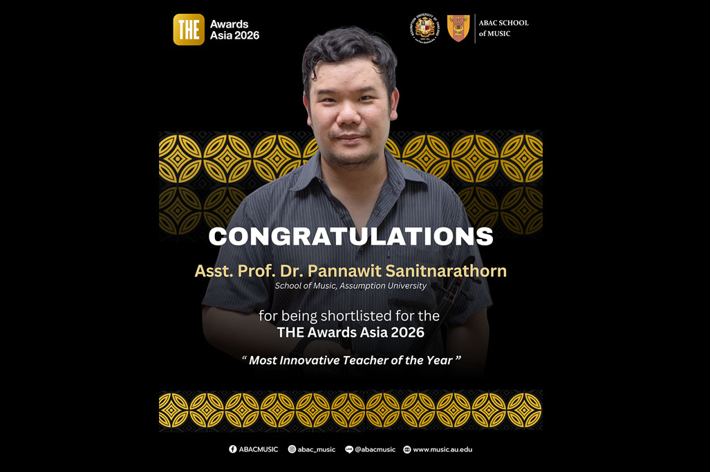 Assumption University of Thailand (AU) proudly announced that Asst. Prof. Dr. Pannawit Sanitnarathorn, Dean of the Louis Nobiron School of Music, was shortlisted for the Most Innovative Teacher of the Year category at the Times Higher Education Awards Asia 2026.