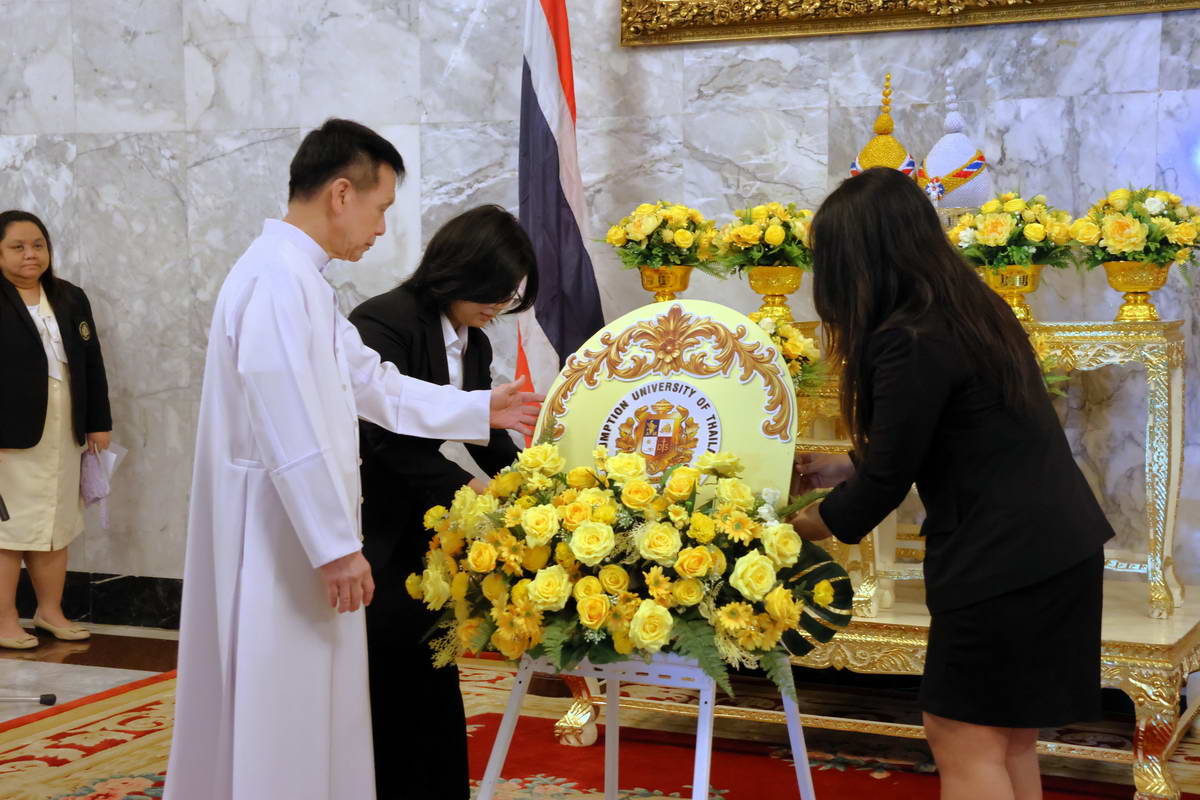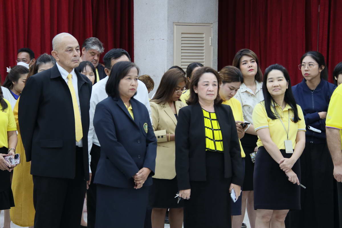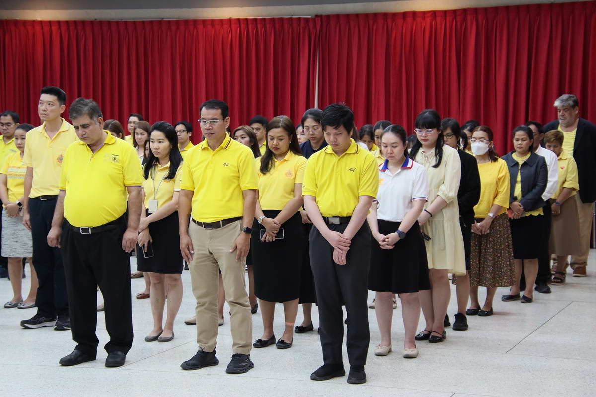 At Suvarnabhumi Campus, the community gathered in the King’s Room of the Cathedral of Learning. The service opened with the laying of a wreath, followed by a remembrance speech. The ceremony concluded in stillness, as participants stood together for 89 seconds of silence, a symbolic gesture echoing the years of His Majesty’s reign.