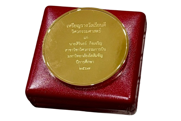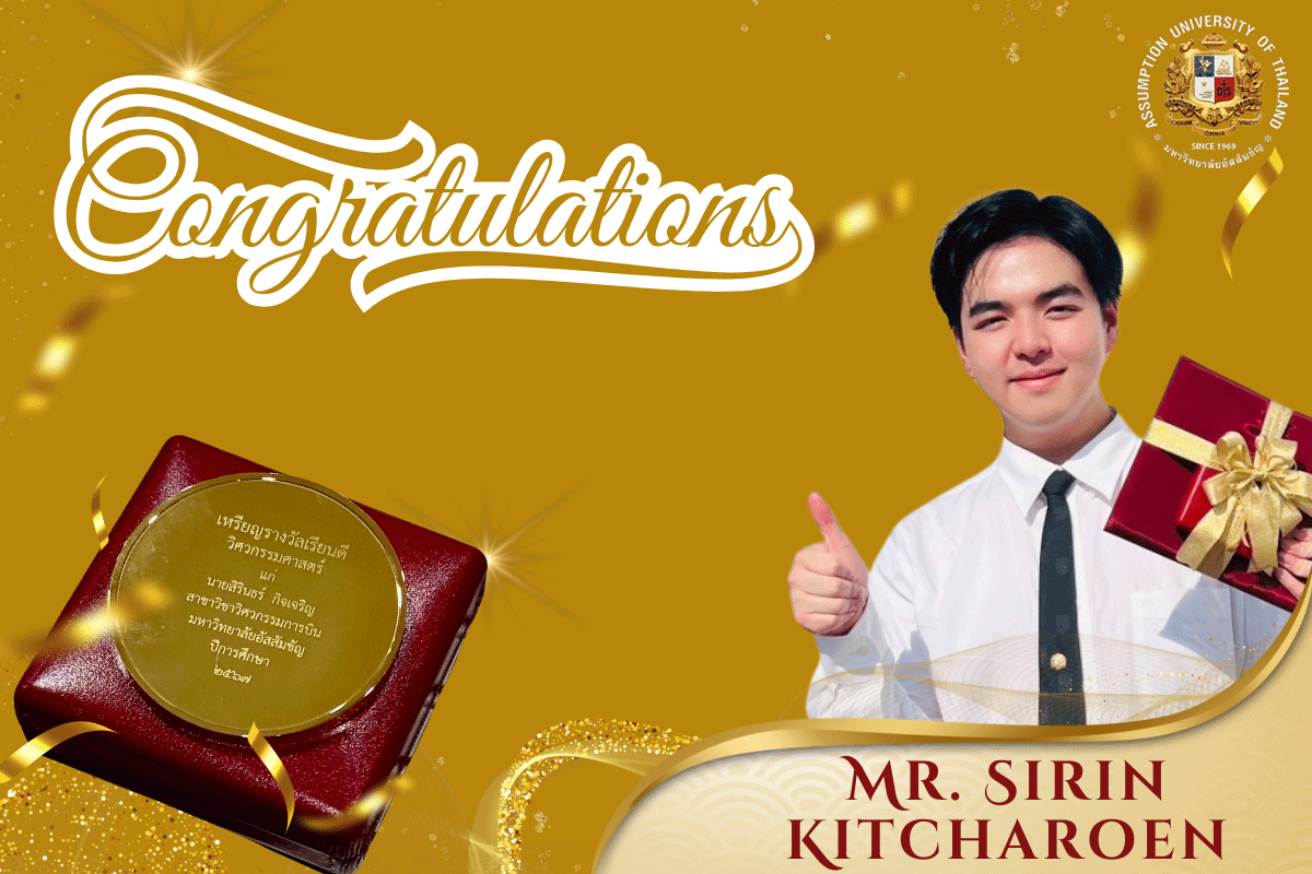 Asst. Prof. Dr. Narong Aphiratsakunthe Dean of Vincent Mary School of Engineering, Science and Technology (VMES), Assumption University of Thailand, shared his thoughts: “Khun Sirin Kitcharoen represents the very best of our university. His hard work and passion inspire us all. We are proud of his achievement and excited for his bright future.”