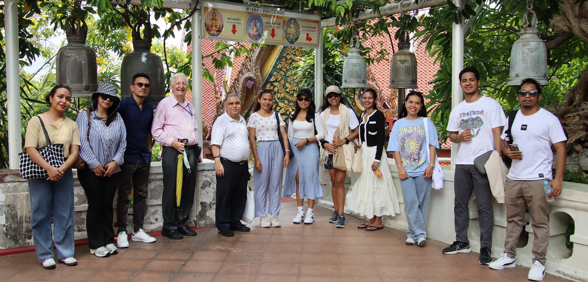 Dr. John Barnes, assisted by Mr. Glen Chatelier, conducted a one-day Purposeful Tour for ten students from Timor Leste on April 27, 2025. One objective of the tour was to expose students to Temple site tourism and highlight the core elements of architecture and faith structures of Buddhism, which Thailand prides itself on. To that end, Wat Sraket and the Golden Mount were visited.