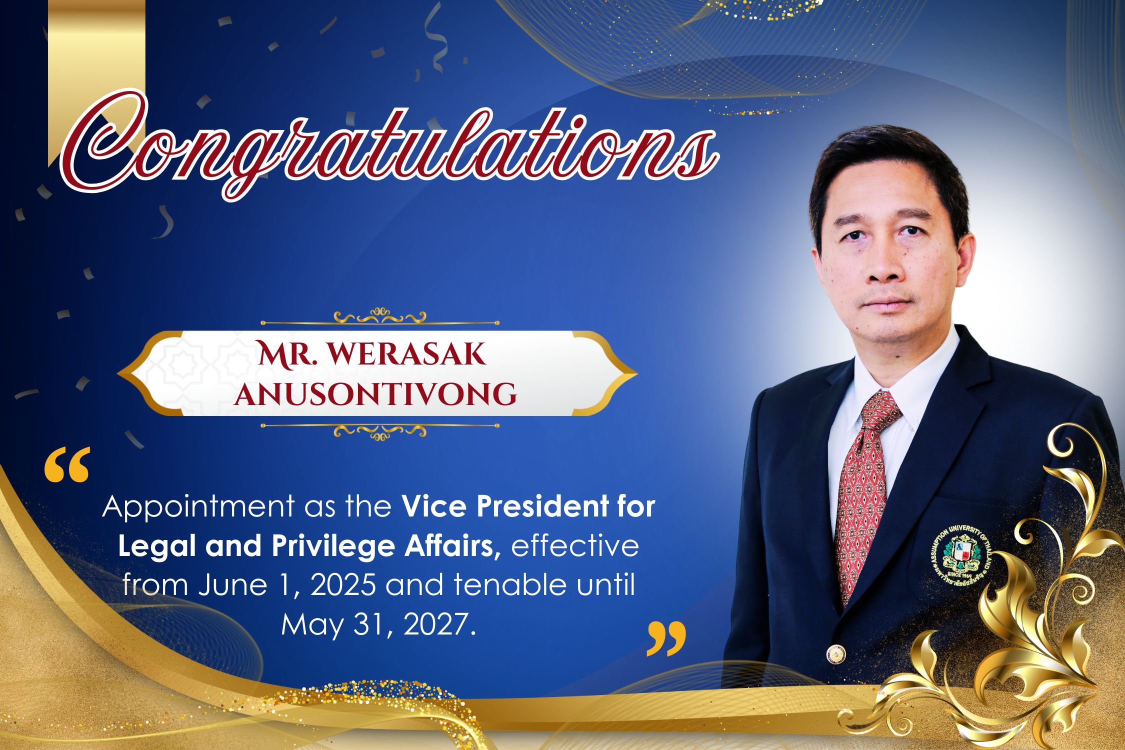2024 – present Vice President for Special Affairs, Assumption University