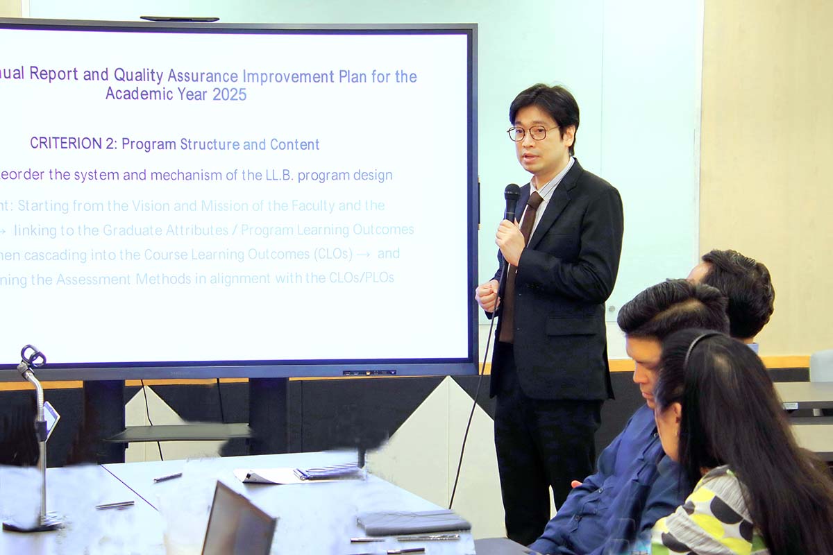 During the session, discussions highlighted collaborative strategies for program development, teaching and learning innovation, quality assurance systems, and student success initiatives across both Thai and International Programs. The visit also underscored the importance of aligning the School of Law’s curriculum with global standards in legal education and ensuring that graduates are prepared for leadership in both local and international contexts.
