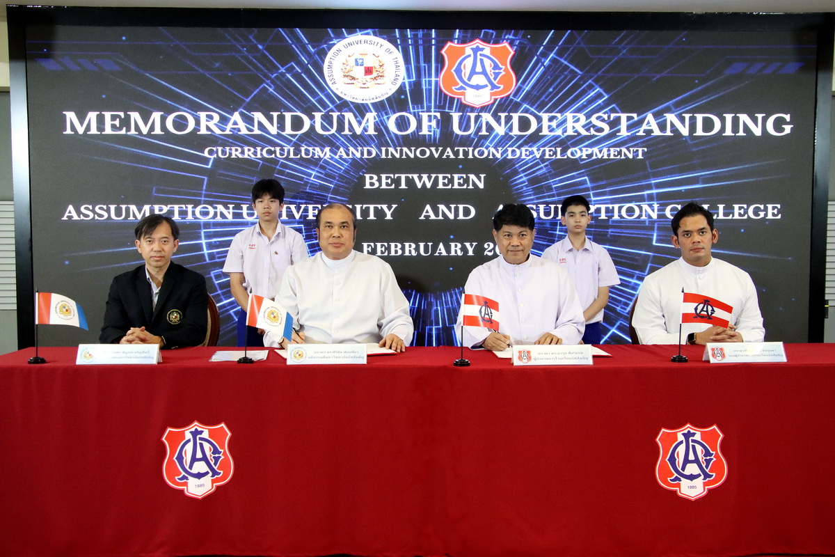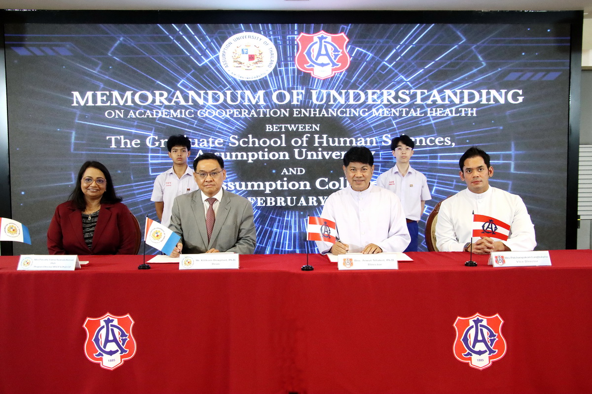 Assumption University of Thailand (AU) has officially signed two Memorandums of Understanding (MoUs) with Assumption College (AC), strengthening their collaboration in education, research, and student well-being. These agreements mark a significant step toward fostering academic excellence and promoting mental health awareness within the educational community.