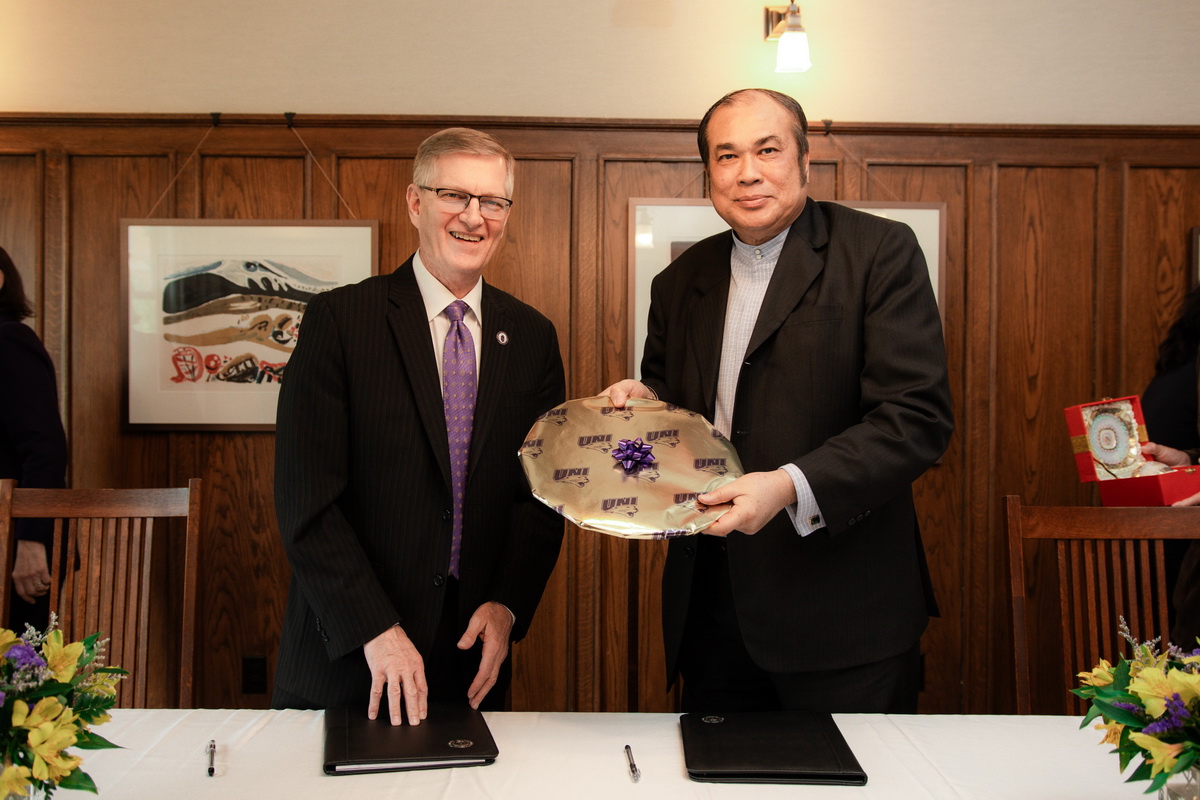 Assumption University of Thailand (AU) is proud to announce the beginning of a new academic partnership with the University of Northern Iowa (UNI), marking a significant step forward in international collaboration. On this occasion, Rev. Bro. Dr. Sirichai Fonseka, f.s.g., President of Assumption University, had the distinct honor of meeting with Dr. Mark A. Nook, President of the University of Northern Iowa. This connection, fostered through the Network of International Business Schools (NIBS), reflects a shared vision and deep mutual respect. The visit by AU’s delegation culminated in the official signing of a Memorandum of Understanding (MoU), laying the foundation for future academic and cultural exchange.
