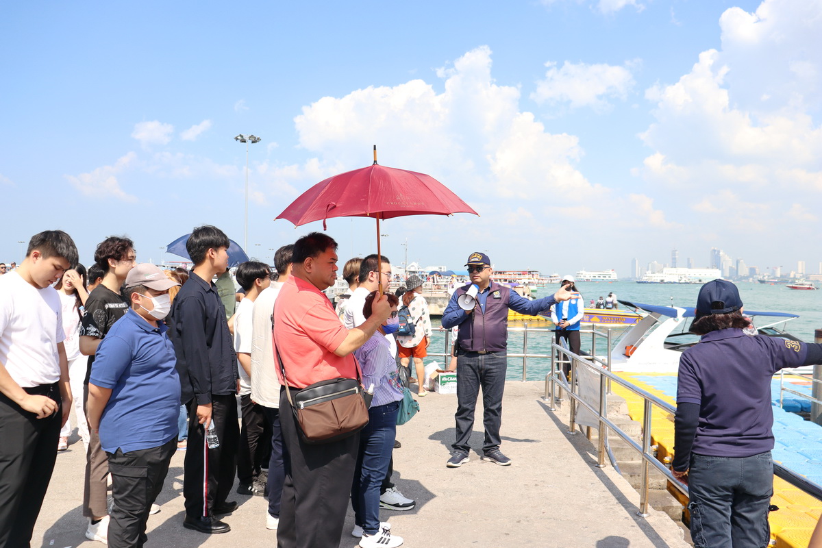 Culminating the enriching journey at Bali Hai Pier in Pattaya, Chonburi Province, participants grasped the nuances of port operations and kinds of vessels, elucidating the critical role of legal compliance in maritime logistics, laws regarding navigation in Thai waters, Thai ship law, laws on ship collision prevention, laws on the strengthening of maritime commerce, laws on multimodal transport, and other related laws, etc. The special lecture and practice demonstration was illustrated by Mr. Ekkarat Kantharo, Director of the Pattaya Marine Department Region 6 and his professional officials’ team.