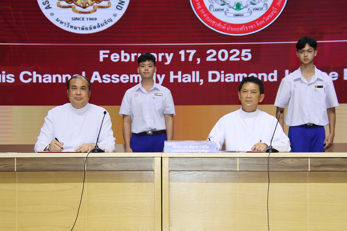 The agreement, signed by Rev. Bro. Sirichai Fonseka, f.s.g., Ph.D., President of AU, and Rev. Bro. Pisutr Vapiso, f.s.g., Ph.D., Director of Assumption College Sriracha, is designed to strengthen academic collaboration between the two institutions over the next five years.