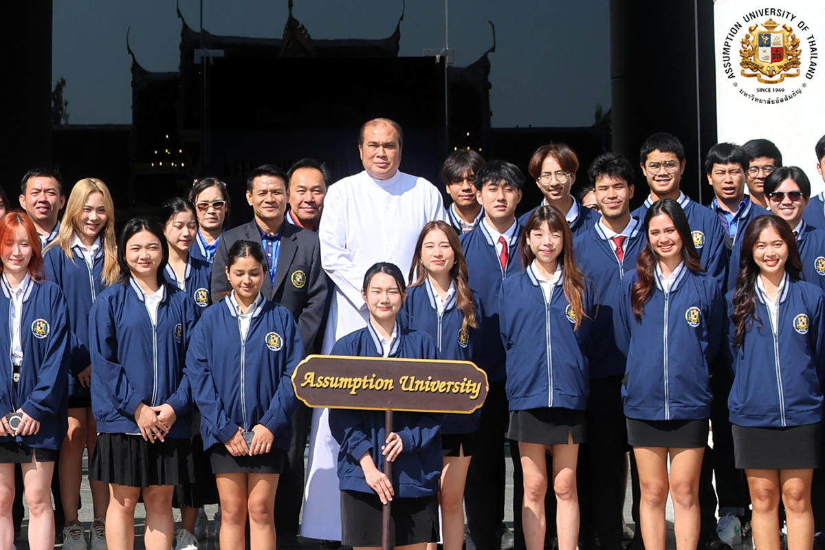 Assumption University of Thailand (AU) came together today to cheer on its athletes as they prepare to compete in the 50th Thailand University Games, “Thammasat Games.” The Blessing Ceremony, organized by the Center for Sports and Physical Fitness, Student Affairs, was held at the CL Lobby, The Cathedral of Learning Building, Suvarnabhumi Campus.