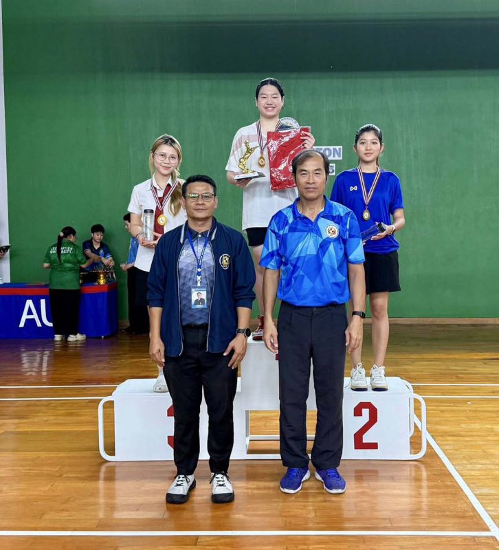 From 15–17 September 2025, the Center for Sports and Physical Fitness, Student Affairs, Assumption University of Thailand (AU) hosted the AU Badminton Freshy Cup 2025 at the Badminton Hall, John Paul II Sports Center, at Suvarnabhumi Campus with 14 first-year students competing. Acting Sub Lt. Dr. Yutthana Suwannatarn, Vice President for Student Affairs, and A. Nukul Chaisuriya, Director of the Center for Sports and Physical Fitness, presented awards to the winners. Congratulations to all participants and thanks to everyone who supported the event.