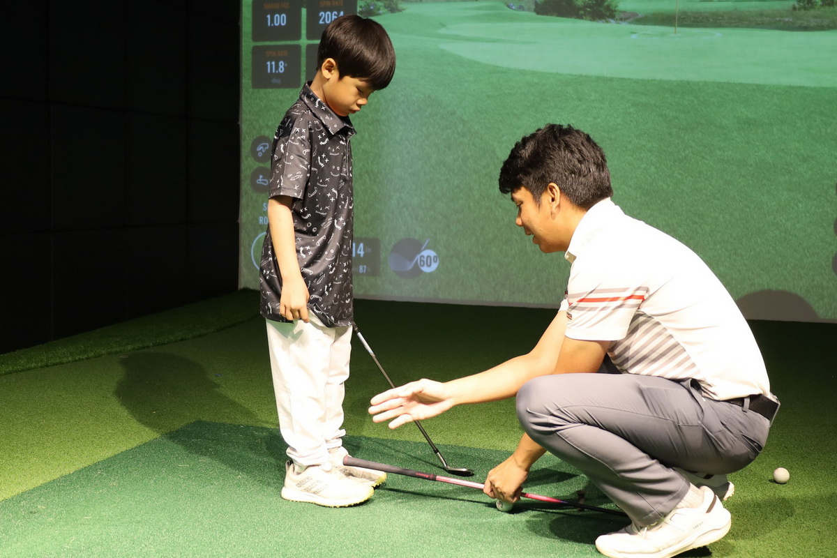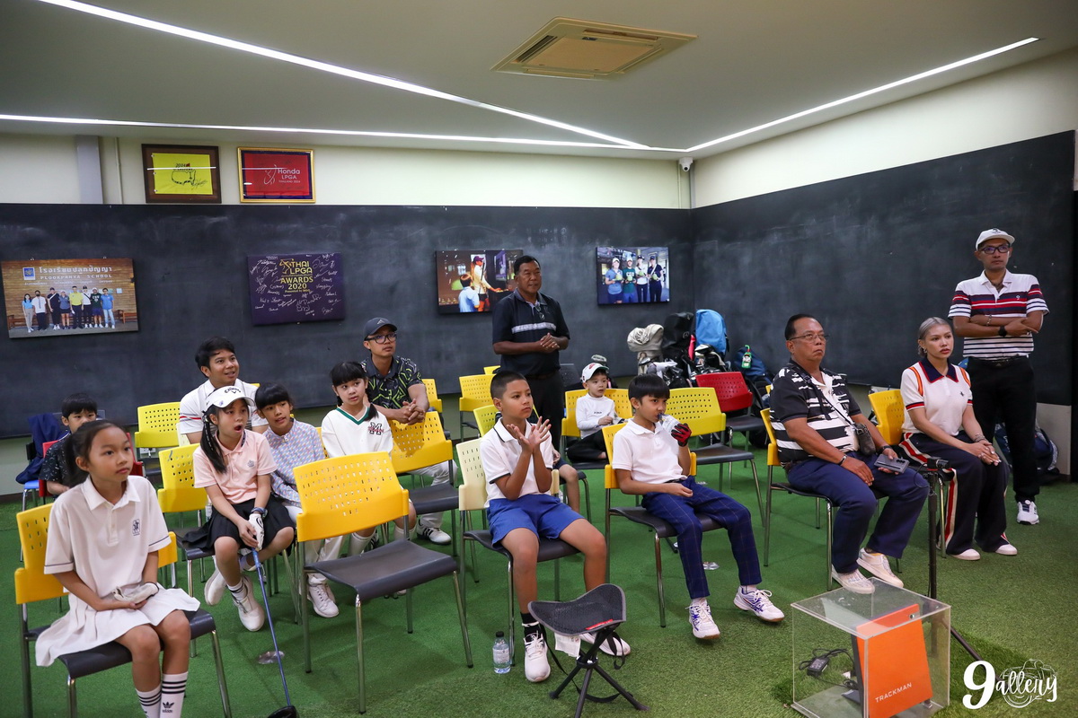 Young golfers from the Plookpanya Golf School had an extraordinary experience this past week as they trained alongside the AU Golf Team at the Plookpanya Golf Learning Center’s simulator room. This special golf camp for under-10 (U10) players provided not just technical training but also mentorship from experienced collegiate athletes.