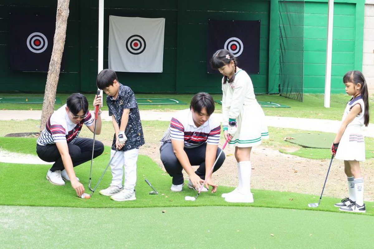 Under the expert guidance of Pro Bew, Pro Keng, and Pookpanya Golf School’s coaching team, the young participants received hands-on training in various aspects of the game, from perfecting their swings to mastering short-game techniques. However, this session was made even more special by the presence of student-athletes from Assumption University of Thailand ’s (AU) Golf Team, who generously volunteered their time to mentor the young golfers.