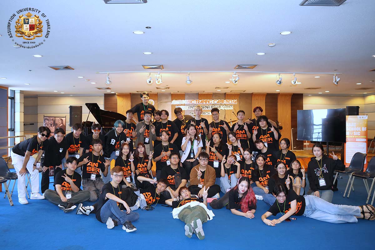 Assumption University of Thailand (AU) ‘s Suvarnabhumi Campus buzzed with excitement as the ABAC Music Training Camp 14 successfully wrapped up from March 24-26, 2025. Organized by the Louis Nobiron School of Music and sponsored by AMBER, this year’s camp hit all the right notes, drawing enthusiastic young musicians eager to explore both the spotlight and behind-the-scenes of Thailand’s music industry.