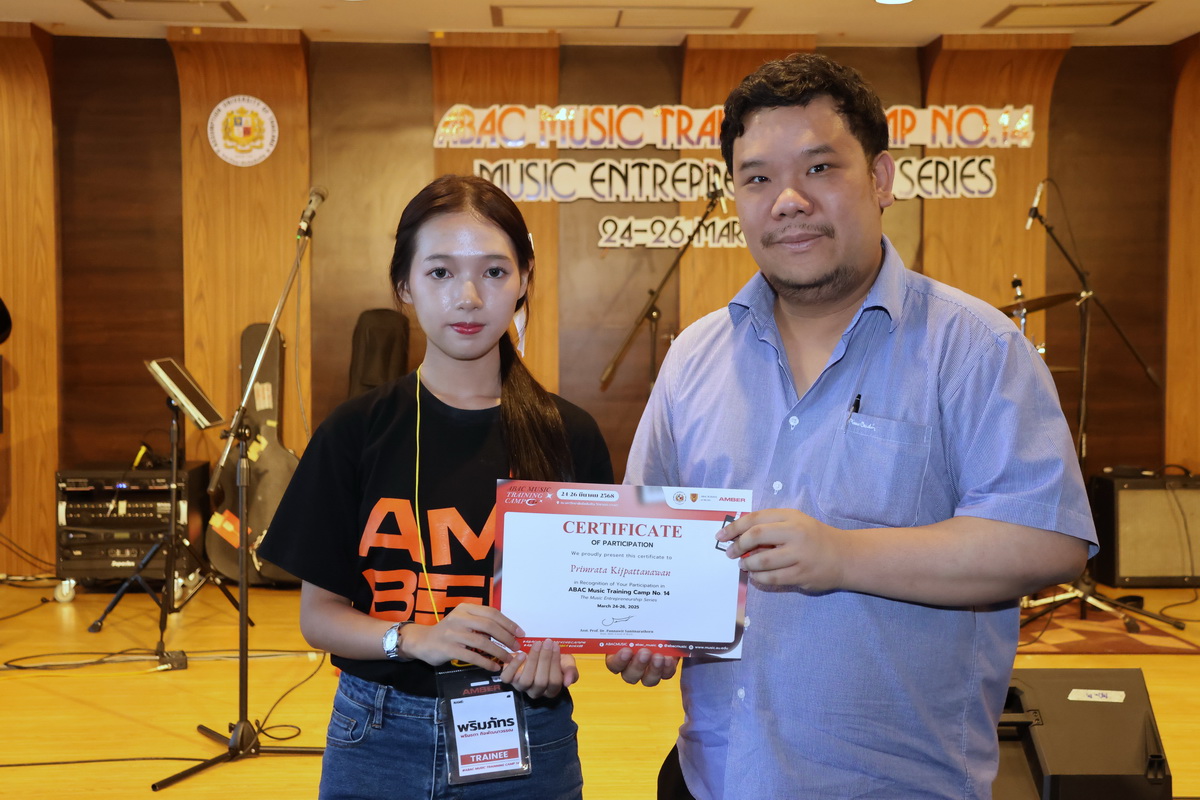 Assumption University of Thailand (AU) ‘s Suvarnabhumi Campus buzzed with excitement as the ABAC Music Training Camp 14 successfully wrapped up from March 24-26, 2025. Organized by the Louis Nobiron School of Music and sponsored by AMBER, this year’s camp hit all the right notes, drawing enthusiastic young musicians eager to explore both the spotlight and behind-the-scenes of Thailand’s music industry.