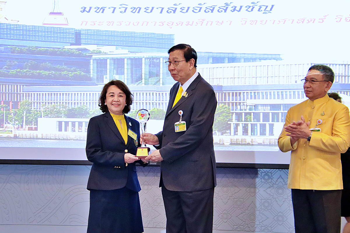 Assumption University of Thailand (AU) is honored to announce that it has been recognized with the prestigious “Good People Organization” award. The award was presented at the Hall of Fame, Senate Building, by the Senate Committee on Religions, Morals, Ethics, Arts, and Culture (The Committee Religions Morals Ethics Arts and Culture). The ceremony was presided over by Prof. Pornpetch Wichitcholchai, President of the Senate.