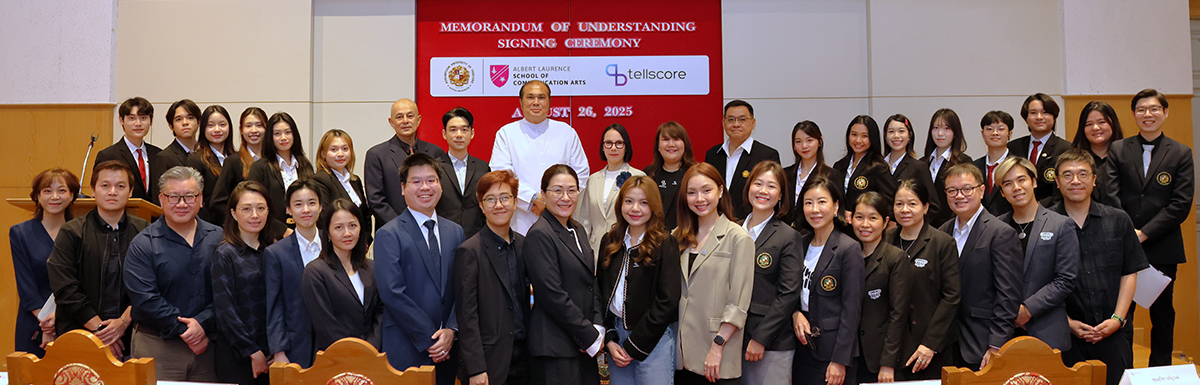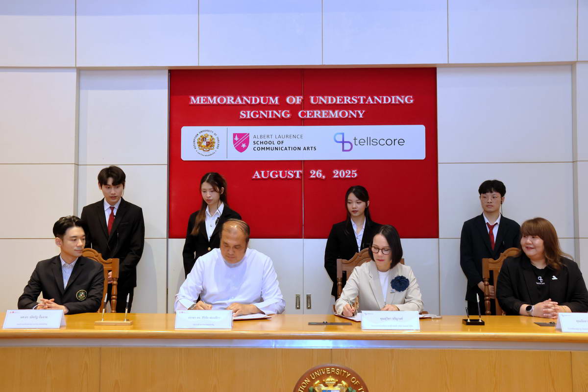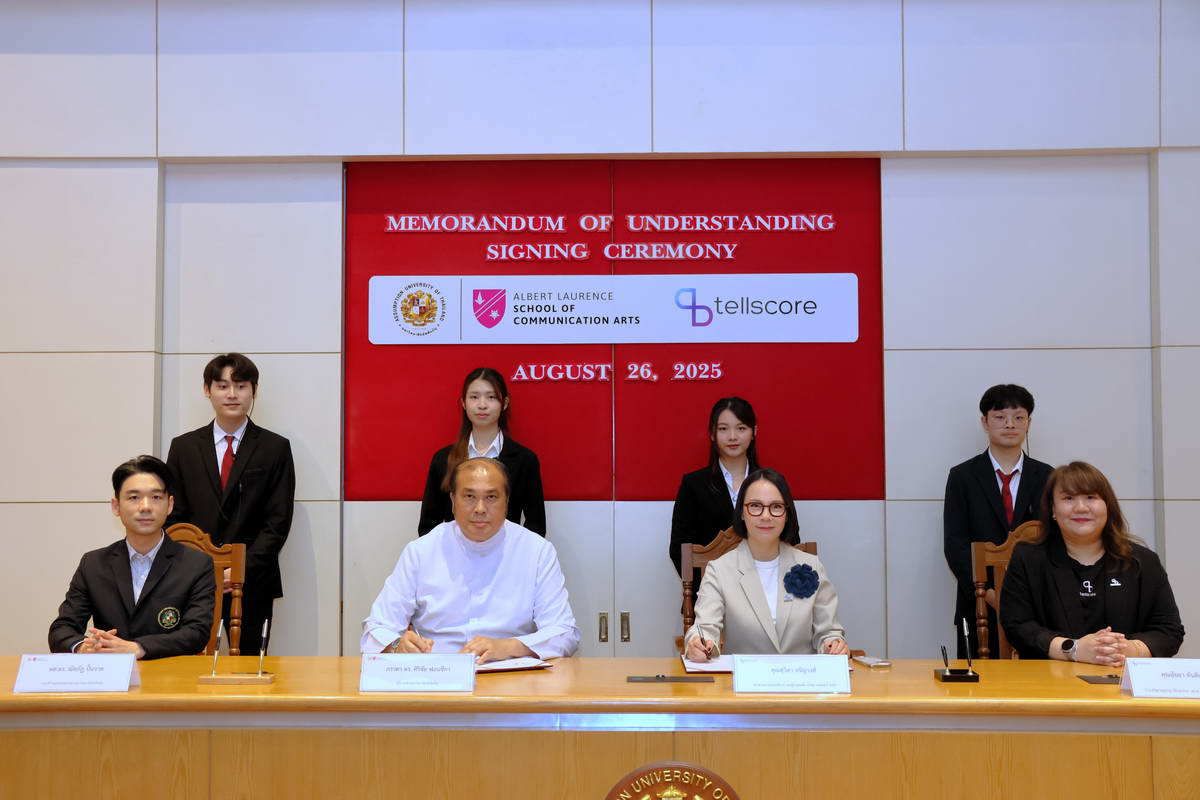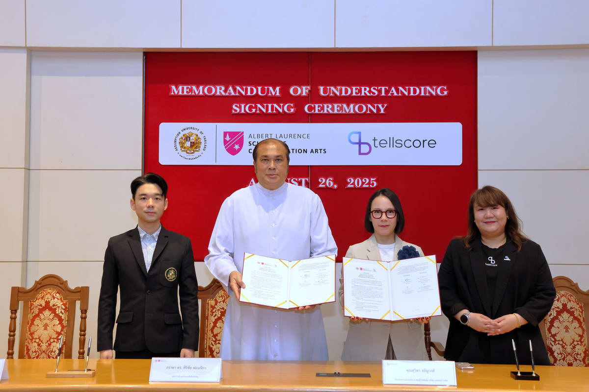 Bangkok, August 26, 2025 – Assumption University of Thailand (AU), through its Albert Laurence School of Communication Arts, officially signed a Memorandum of Understanding (MoU) with Tellscore Company Limited, one of Thailand’s leading influencer marketing platforms. The ceremony took place at the Cathedral of Learning, Suvarnabhumi Campus, marking a milestone collaboration designed to bridge academia and the fast-growing digital communication industry.