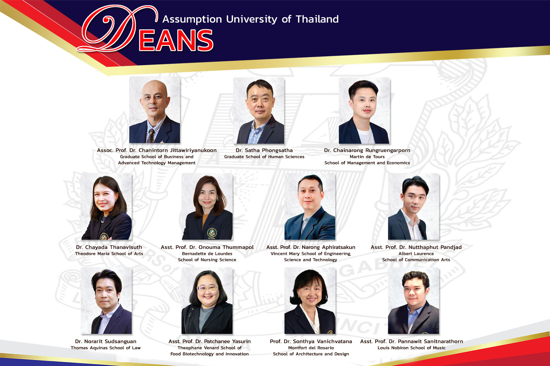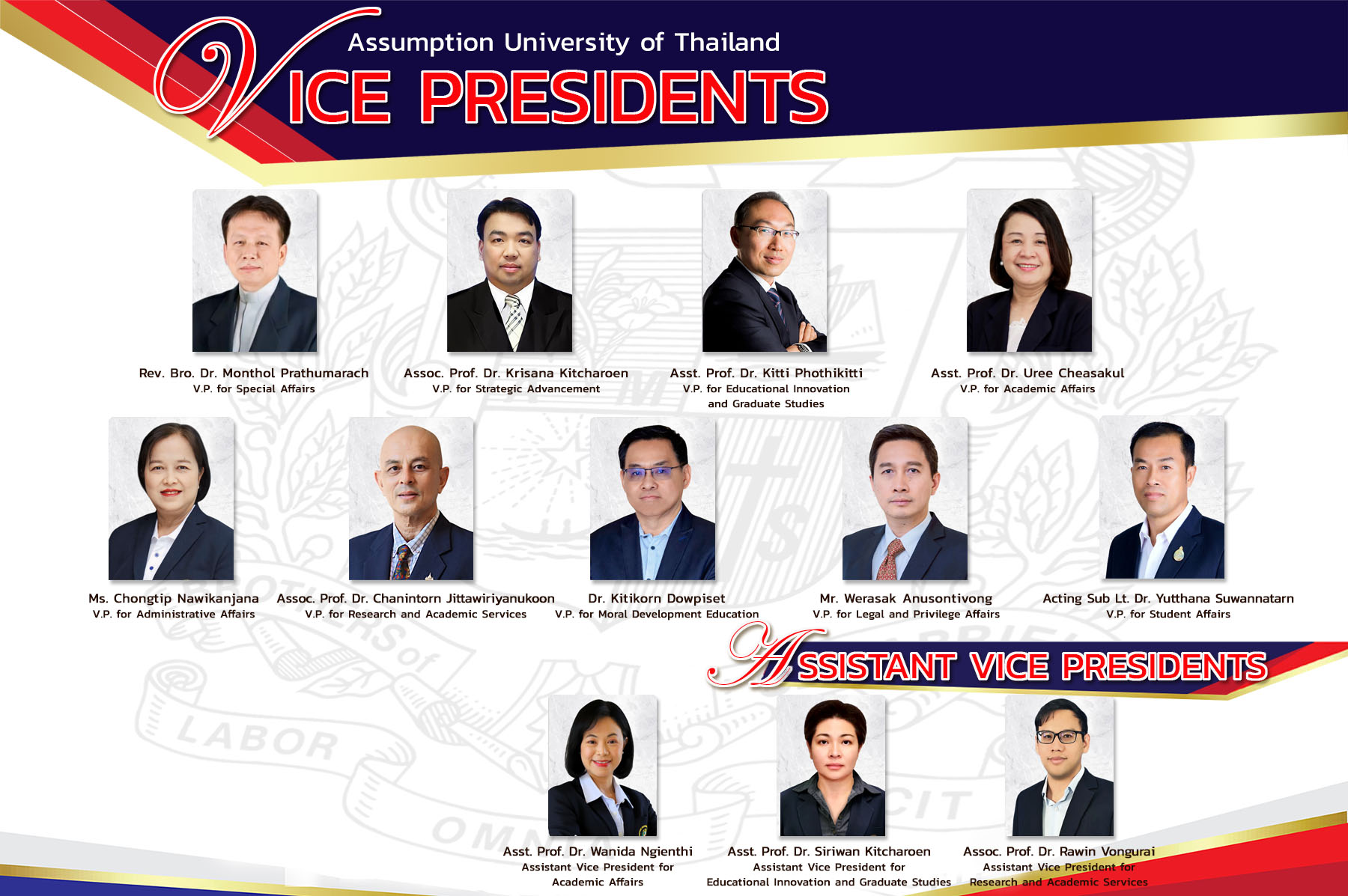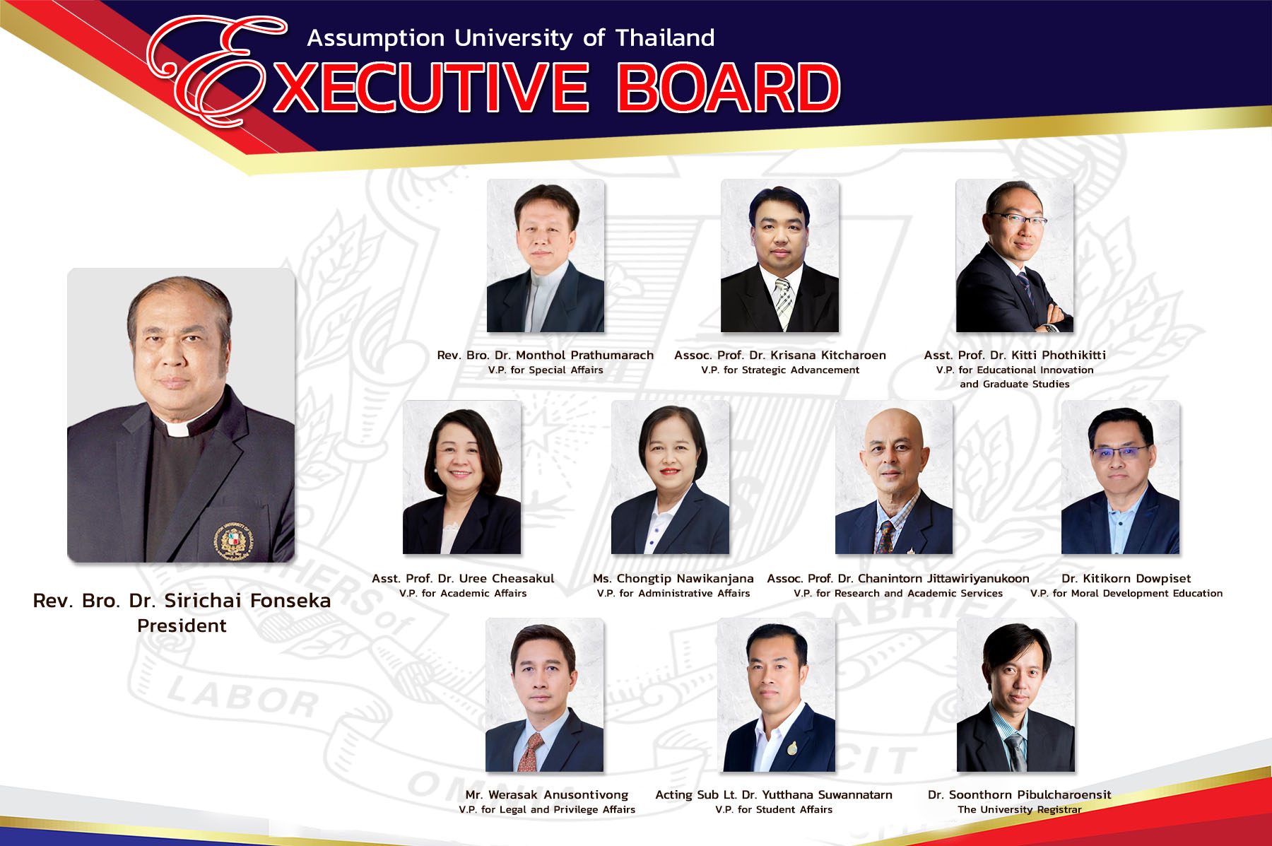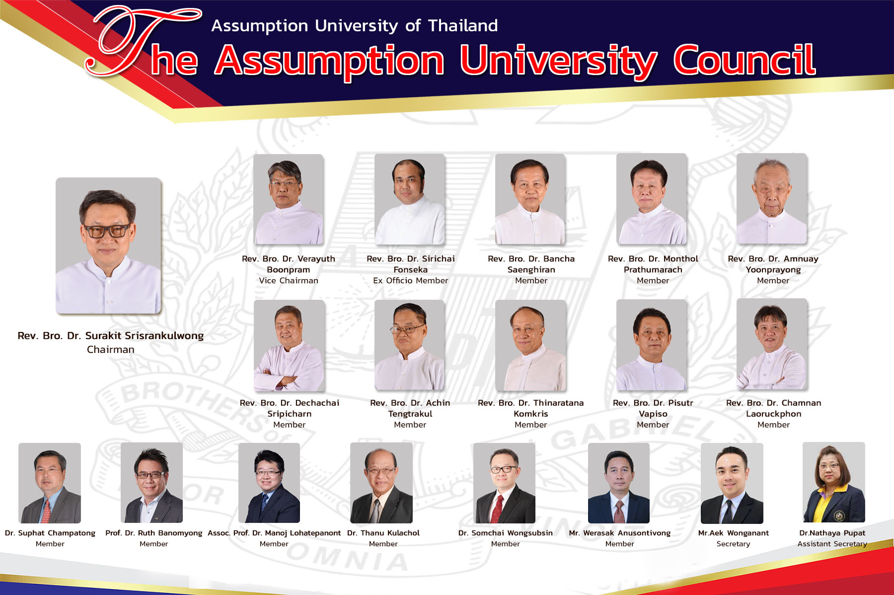 Rev. Bro. Dr. Sirichai Fonseka Rev. Bro. Dr. Monthol Prathumarach Assoc. Prof. Dr. Krisana Kitcharoen Asst. Prof. Dr. Kitti Phothikitti Asst. Prof. Dr. Uree Cheasakul Ms. Chongtip Nawikanjana Assoc. Prof. Dr. Chanintorn Jittawiriyanukoon Dr. Kitikorn Dowpiset Mr. Werasak Anusontivong Acting Sub Lt. Dr. Yutthana Suwannatarn Dr. Soonthorn Pibulcharoensit
