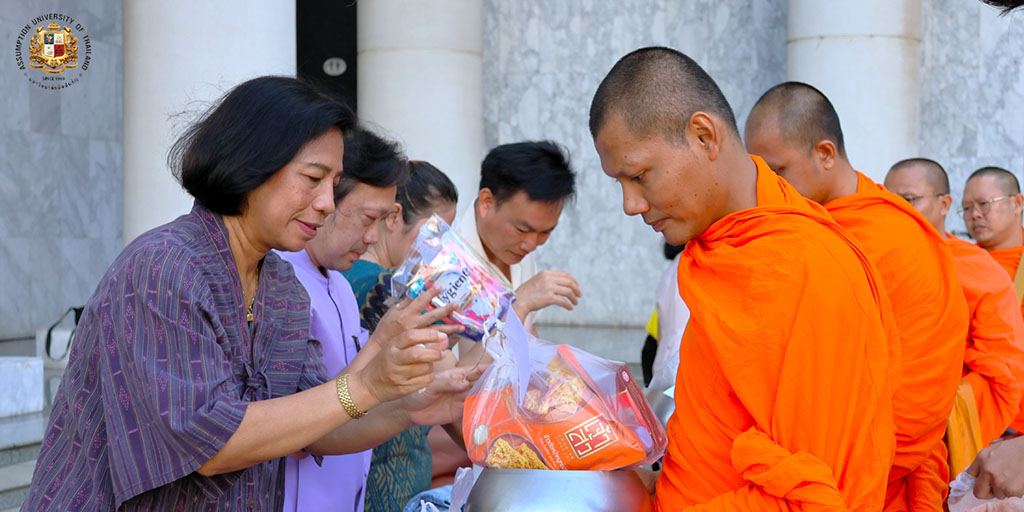 Assumption University of Thailand (AU) came together on November 13, 2024, in a quiet yet poignant almsgiving ceremony, paying tribute to His Majesty the King’s 6th Cycle Birthday Anniversary. The event unfolded in the early hours at the Sri Rattanakosin Gate, in front of the university’s CL Building on the Suvarnabhumi Campus, where faculty, students, and staff gathered in solemn reflection.