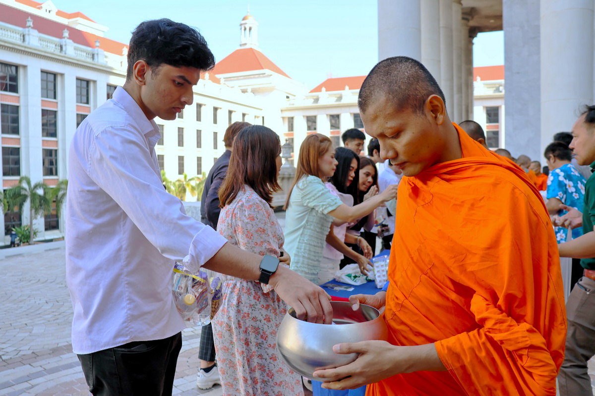 The ceremony saw participants offering alms to nine Buddhist monks—a symbolic gesture rooted in Thai tradition, honoring the King’s enduring contributions to the nation and underscoring a collective respect for Thai cultural heritage. As the sun rose, so did the spirit of unity, with the AU community embracing a moment to connect, reflect, and celebrate shared values.