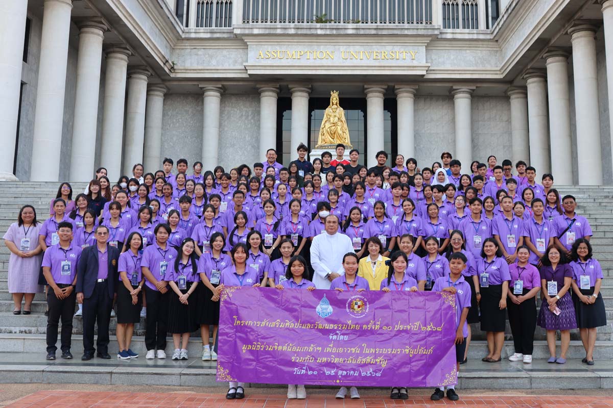 Assumption University of Thailand (AU) proudly welcomed young scholarship recipients from across the nation for the 10th “Thai Art and Culture Promotion Program” (โครงการส่งเสริมศิลปะและวัฒนธรรมไทย ครั้งที่ 10), organized by the Ruamchit-Normklao Foundation (for Youth) under Her Majesty’s Royal Patronage, in collaboration with AU. The program took place from October 21–25, 2025, at Suvarnabhumi Campus as well as cultural and historical attractions in Bangkok and vicinity, with a series of activities designed to deepen cultural understanding and celebrate Thailand’s heritage.