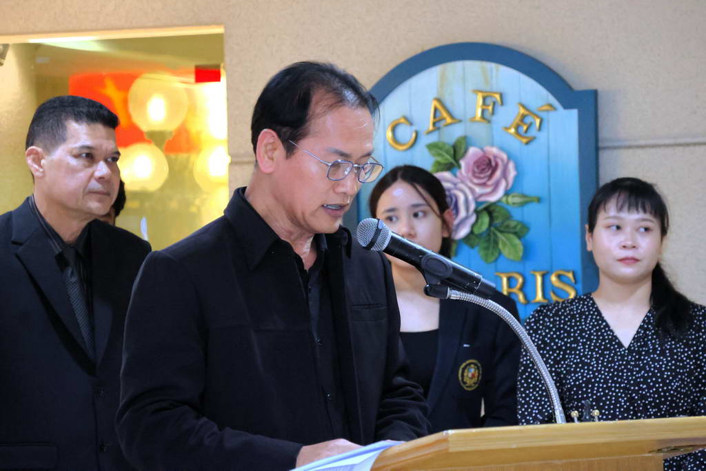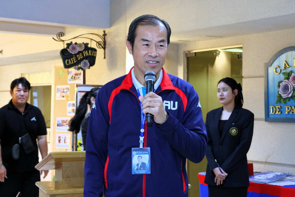 Representing the university’s leadership on behalf of Mr. Werasak Anusontivong, Vice President for Legal and Privilege Affairs, Mr. Aek Wong-anant, Director of the Office of the Vice President for Legal and Privilege Affairs, delivered a heartfelt congratulatory speech.
