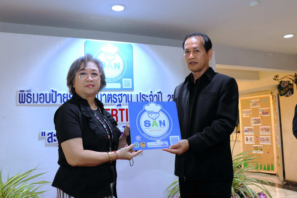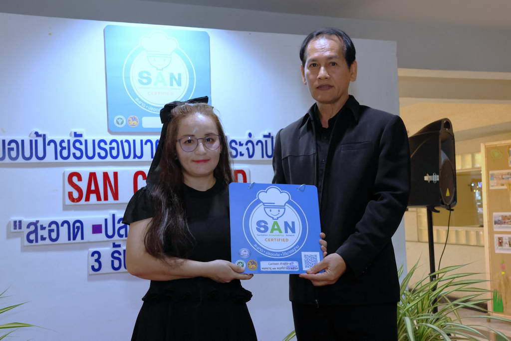 To elevate the quality of life and hygiene standards for the university community, the Office of the Vice President for Legal and Privilege Affairs at Assumption University of Thailand (AU), in close collaboration with the Bang Sao Thong Subdistrict Administrative Organization (SAO), successfully organized the “SAN Certified” Award Ceremony (Sanitation, Accountability, Network). The event, held on Wednesday, December 3, 2025, at the CL Building, 1st Floor (ABAC Plaza), recognized 48 food vendors who passed rigorous hygiene inspections under the “New Normal” safety protocols.