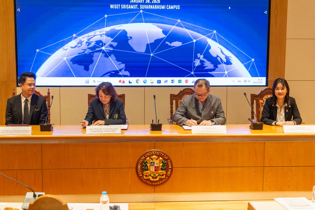 On Friday, January 30, 2026, Martin de Tours School of Management and Economics( MSME Business School) , Assumption University of Thailand (AU), formalized a new international partnership with Singapore Management University through a Memorandum of Understanding (MoU) signing ceremony at the Suvarnabhumi Campus.