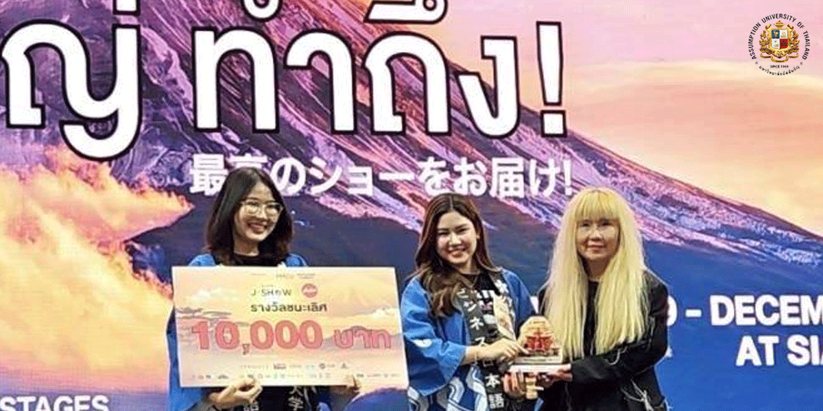 Assumption University of Thailand (AU) proudly celebrates the outstanding achievements of the Department of Business JapaneseTheodore Maria School of Arts, at the SIAM J-SHOW 2024. Our talented students won the prestigious Creative Activity Award in the UNIVERSITY SANDBOX zone, showcasing their creativity and passion for cultural exchange.