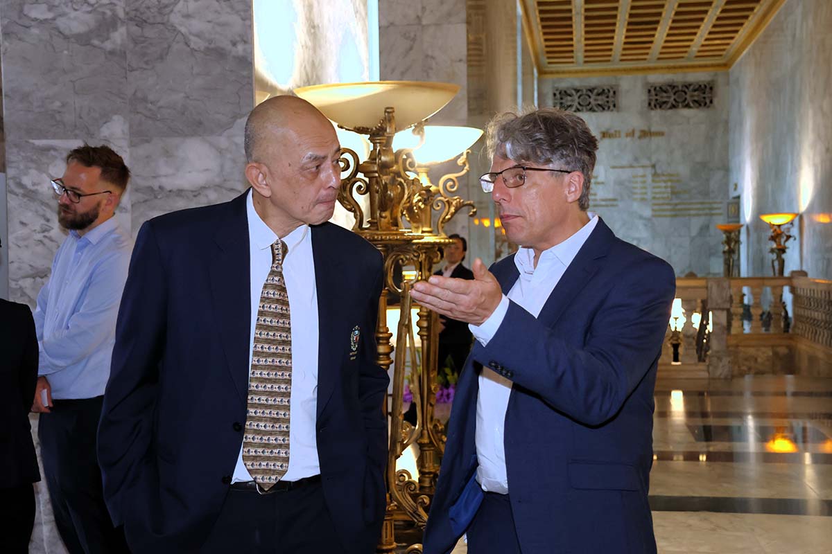 The Leicester delegation was led by Professor Thompson Robinson, and Professor James Fitchett. The day’s activities began with a warm welcome at Sala Chaturamuk Phaichit, followed by high-level discussions with AU’s senior leadership in the King’s Room at the iconic The Cathedral of Learning.