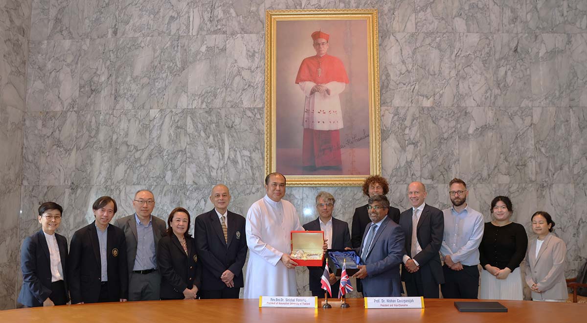 On 23 July 2025, Assumption University of Thailand (AU) proudly welcomed a distinguished delegation from the University a delegation from the University of Leicester, United Kingdom. The visit, coordinated by AU’s Office of International Affairs, took place at Suvarnabhumi Campus and marked a promising chapter in potential academic collaboration.