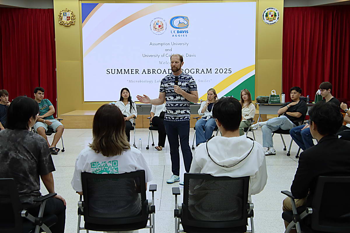 Assumption University of Thailand (AU) proudly welcomed students and faculty from the University of California, Davis for the Summer Abroad Program 2025, themed “Microbiology Lab in the Kingdom of Smiles”. Held on June 21, 2025, at Salle d’ Expo, Hua Mak Campus, the orientation brought fresh energy and familiar faces to campus. We love when the Aggies return! UC Davis has been a cherished academic partner of AU for many years, and this summer’s program once again reflects our shared commitment to global learning, scientific innovation, and lasting cross-cultural friendships.