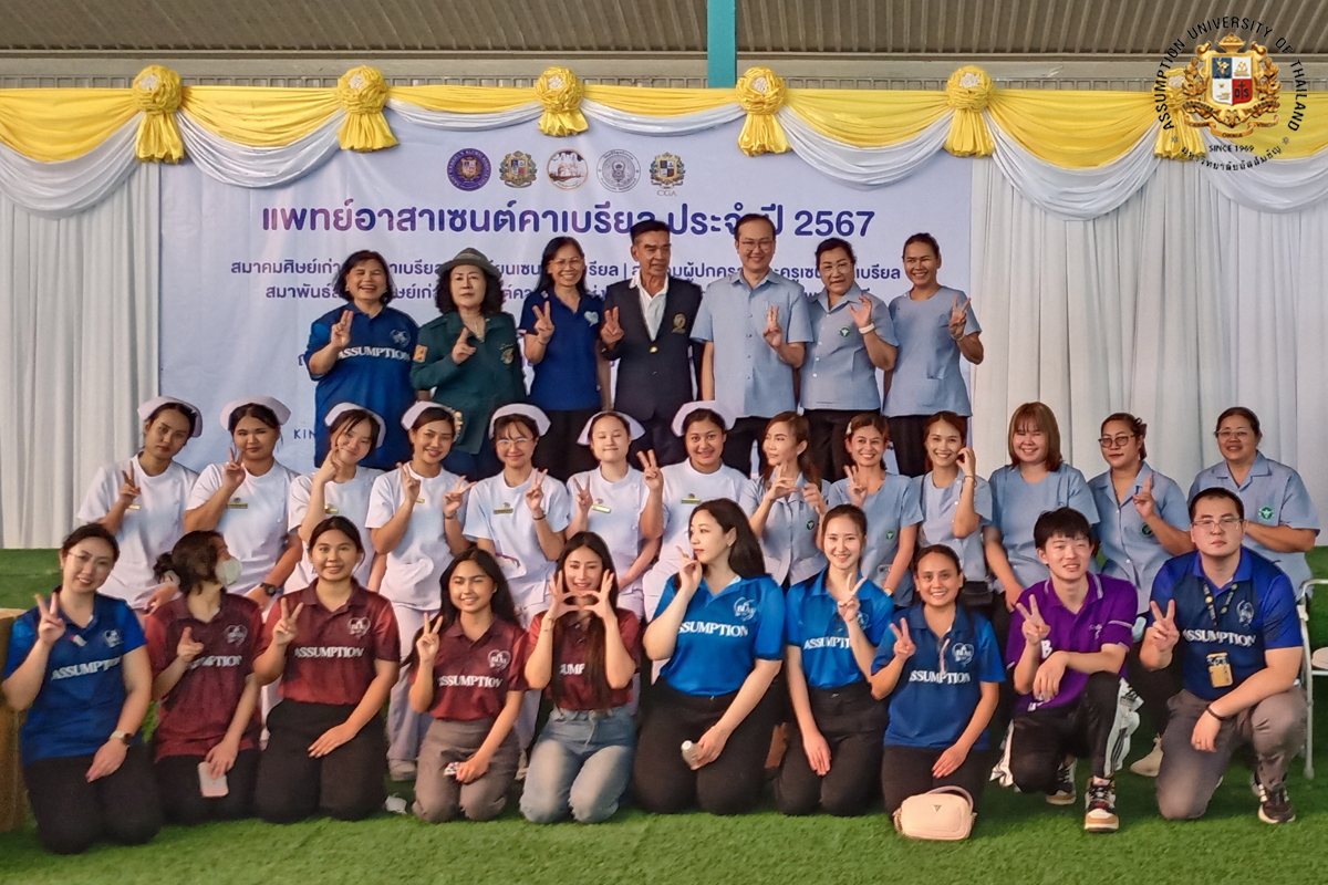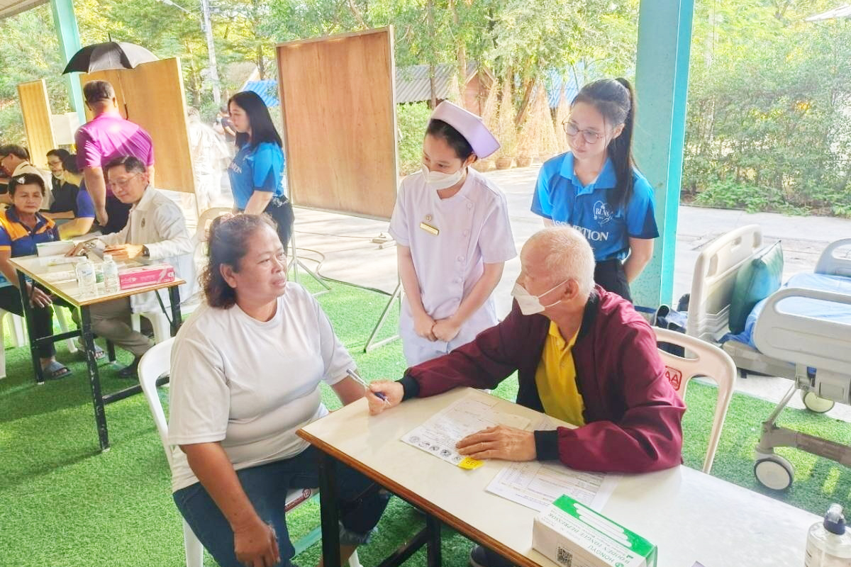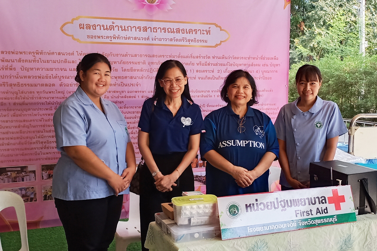 Assumption University of Thailand (AU)’s Bernadette de Lourdes School of Nursing Science (BLNS) showcased its unwavering dedication to community health and service by participating in the Mobile St. Gabriel Volunteer Health Services initiative. This remarkable event, organized by the St. Gabriel’s Alumni Association, St. Gabriel’s School, and The Parents and Teachers Association of St. Gabriel’s School provided essential health services to over 1,000 people at Wat Tri Wisutthitham, Don Chedi District, Suphan Buri, on December 7, 2024.