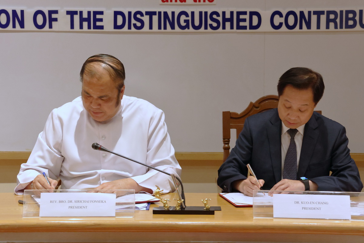 Presiding over the ceremony was Rev. Bro. Sirichai Fonseka, f.s.g., Ph.D., President of AU, recognized for his thoughtful leadership and enduring commitment to academic excellence and global engagement. He was joined by Dr. Kuo-En Chang, President of Tunghai University.