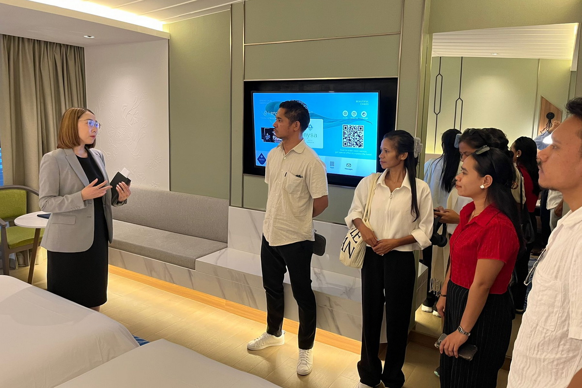 Located in the heart of Bangkok’s bustling Asoke district, Nysa Hotel is a stylish urban oasis that combines sleek design, contemporary comfort, and exceptional service. Upon arrival, students were welcomed like true VIPs—with refreshing drinks and warm hospitality from the hotel’s professional team.