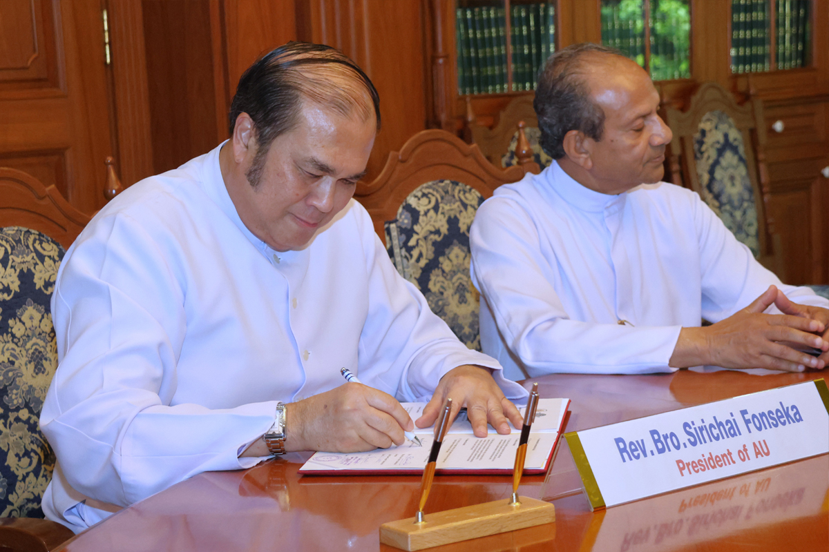 At 11:30 AM, the MoU signing ceremony took place at SR 113, St. Rapheal ‘ s Hall with Rev. Bro. Sirichai Fonseka,f.s.g., Ph.D., President of AU, presiding over the event. The agreement reinforced a shared vision for academic excellence, innovation, and cross-border collaboration.