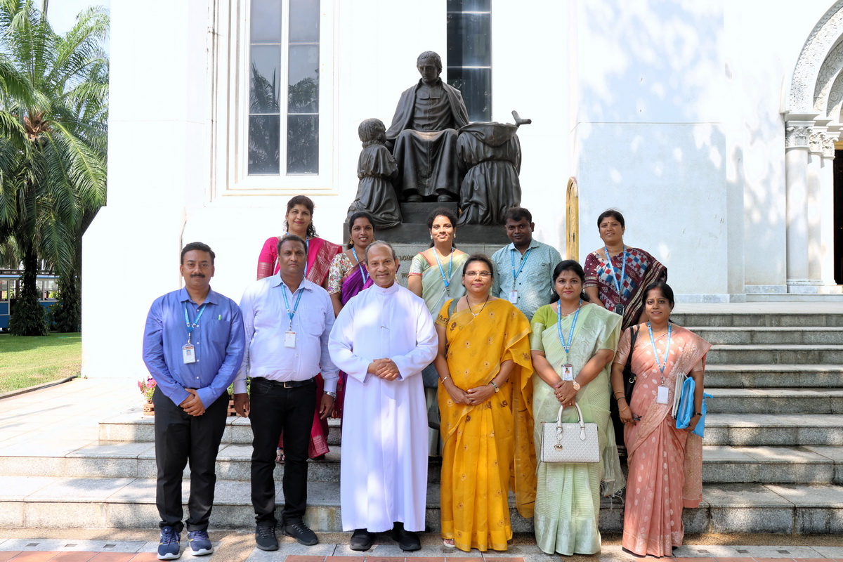 The LFDC delegation, led by Rev. Bro. John Kallarackal, Director, and Mrs. P. Jayanthi Reddy, Principal, received a warm reception at AU’s John XXIII Conference Center. To introduce the visitors to AU’s academic and cultural environment, the delegation embarked on a Campus tour, including a visit to the St. Louis-Marie de Montfort Church, a reflection of AU’s rich Montfortian tradition.