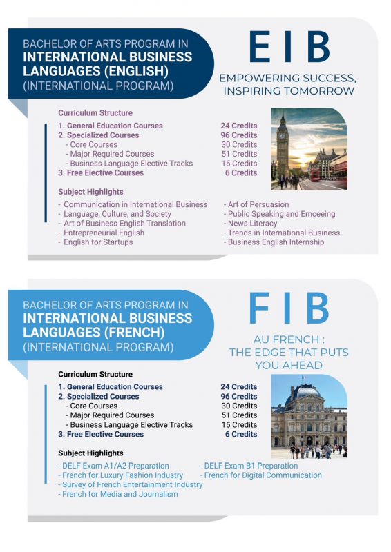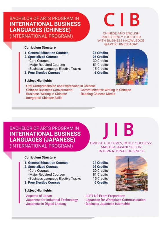 - Bachelor of Arts in International Business Languages (Chinese) – A program designed to cultivate fluency in Chinese alongside critical business skills. Students engage in courses like Chinese Business Conversation, Communicative Writing in Chinese, and Reading Chinese Media to excel in the global marketplace.