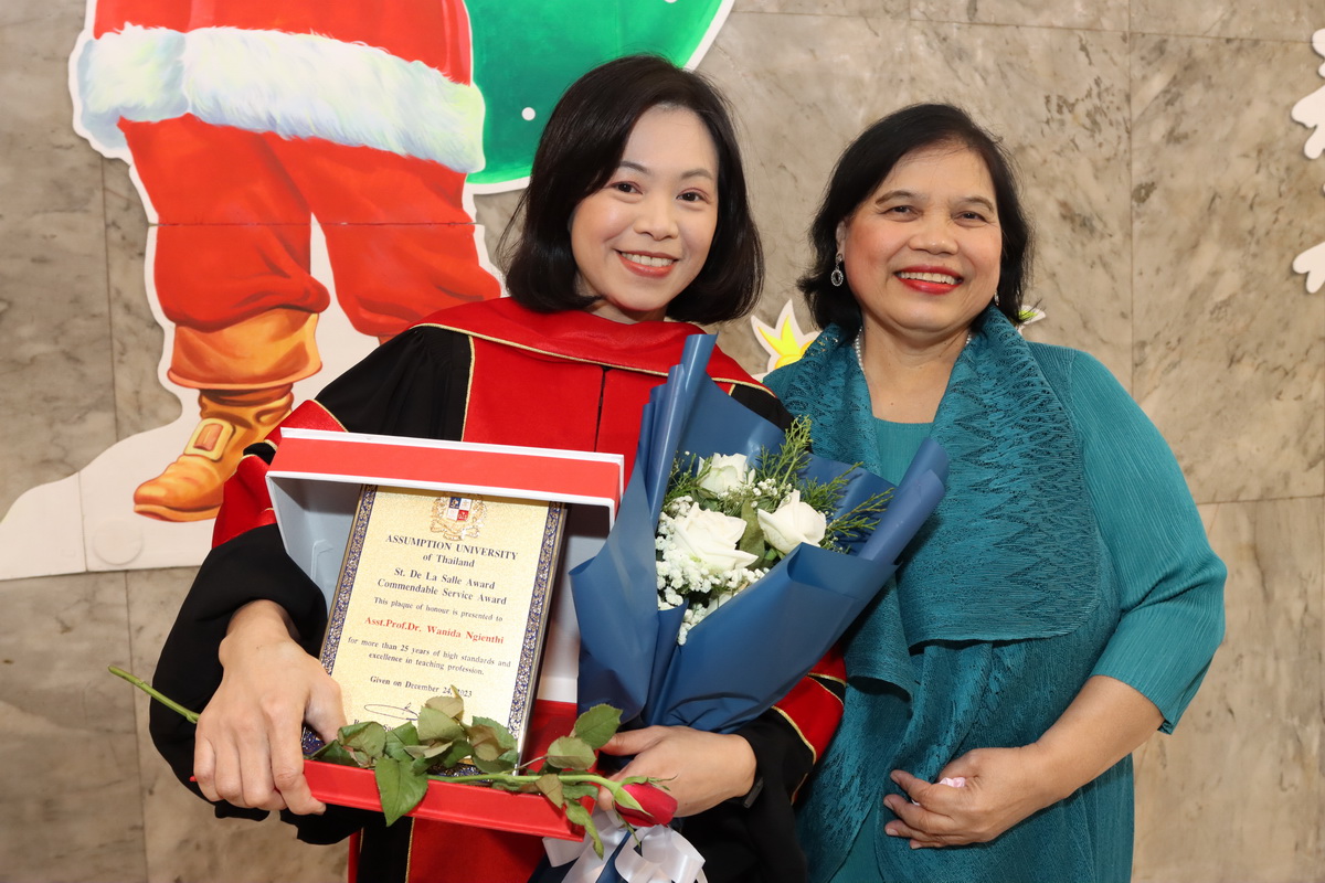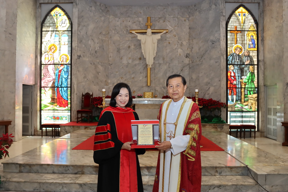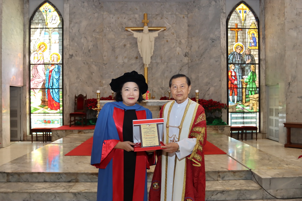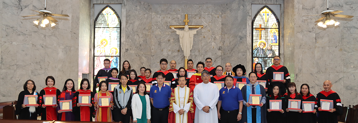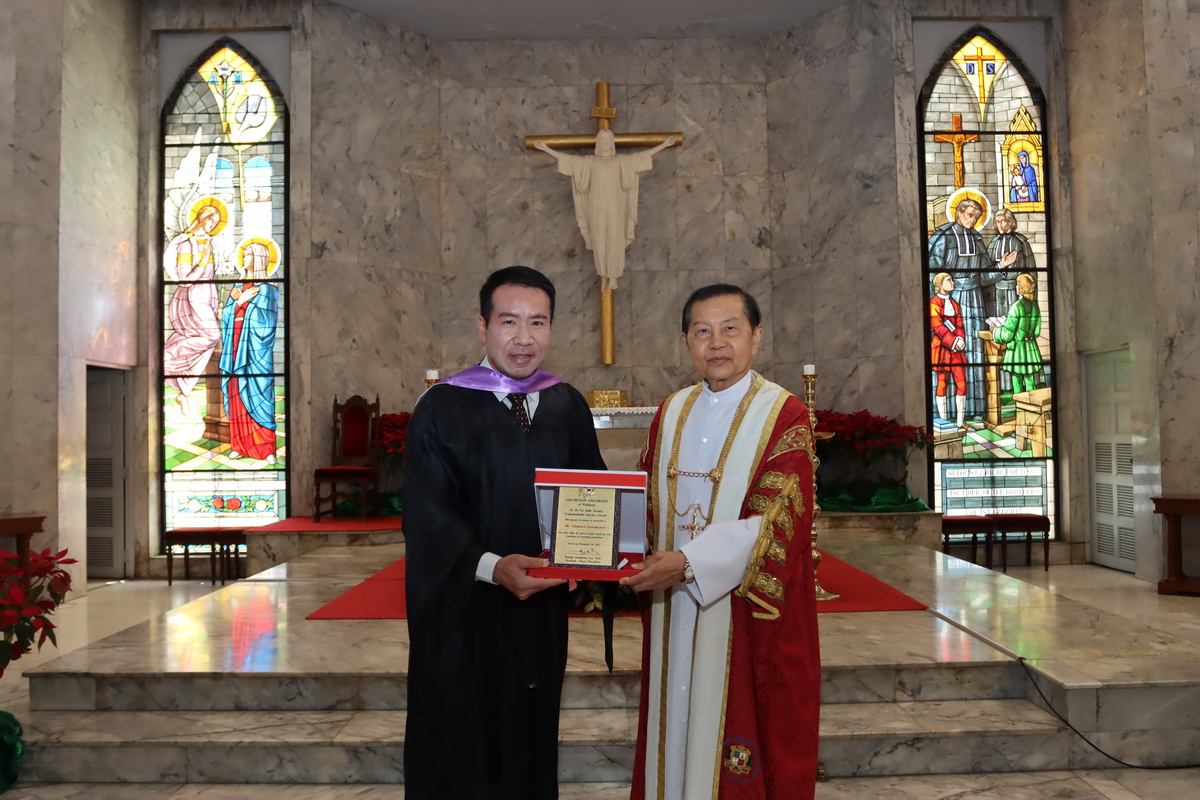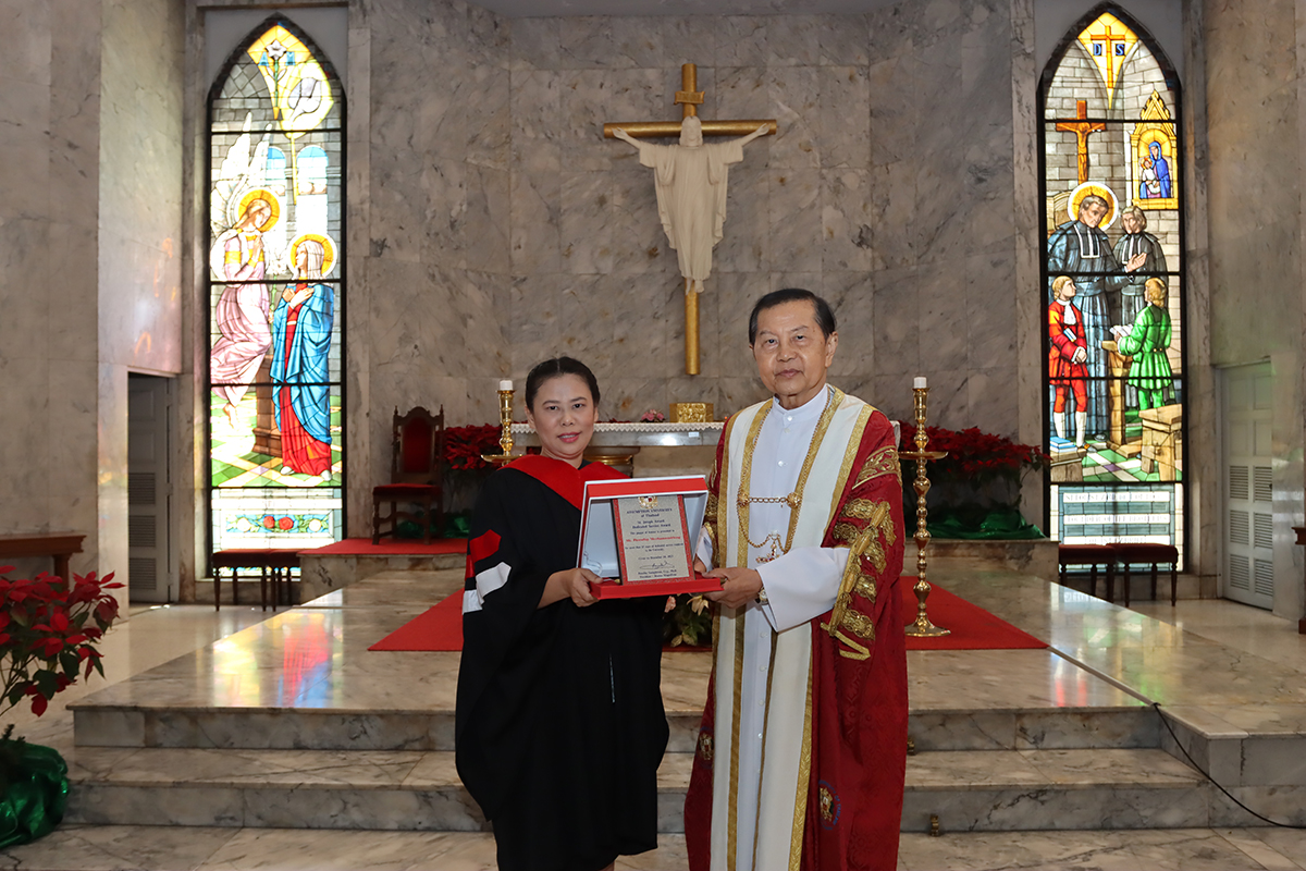 The prestigious St. Montfort Award for Illustrious Service was conferred upon Dr. Chayada Thanavisuth, Dean of the Graduate School of Human Sciences, and Assoc. Prof. Dr. Sureepong Phothongsunan, Dean of the Theodore Maria School of Arts. This award, named after St. Louis Marie Grignion de Montfort, recognizes senior administrators for over twenty-five years of dedicated service.