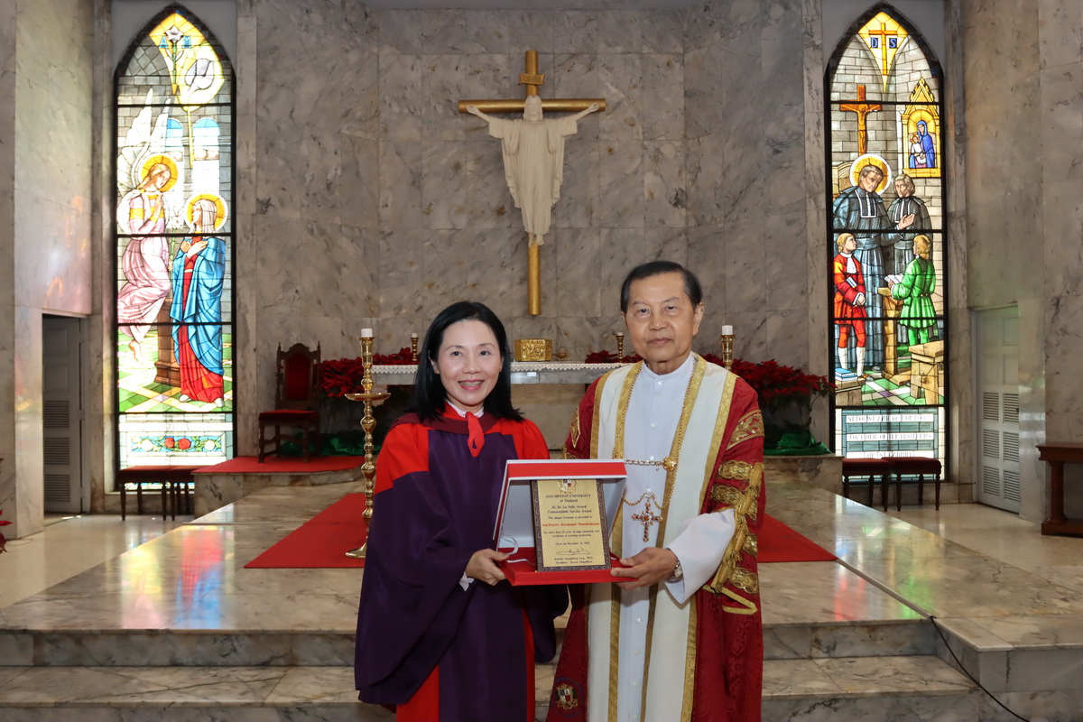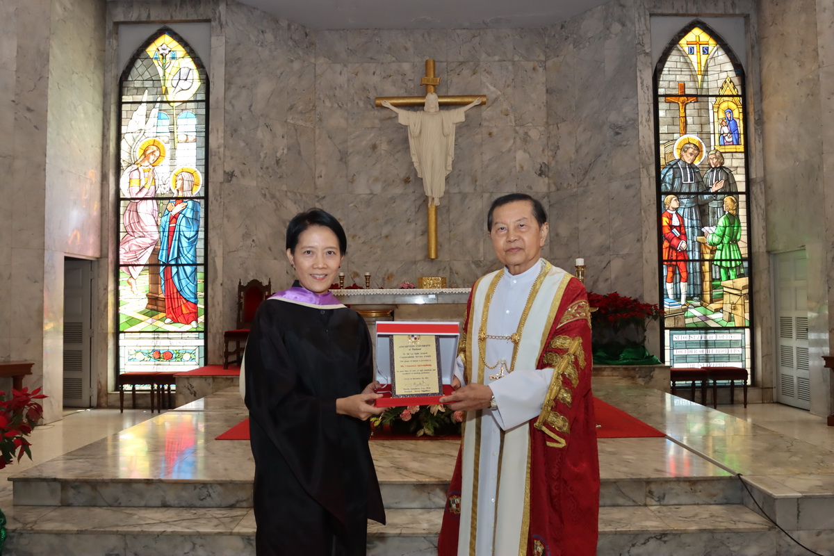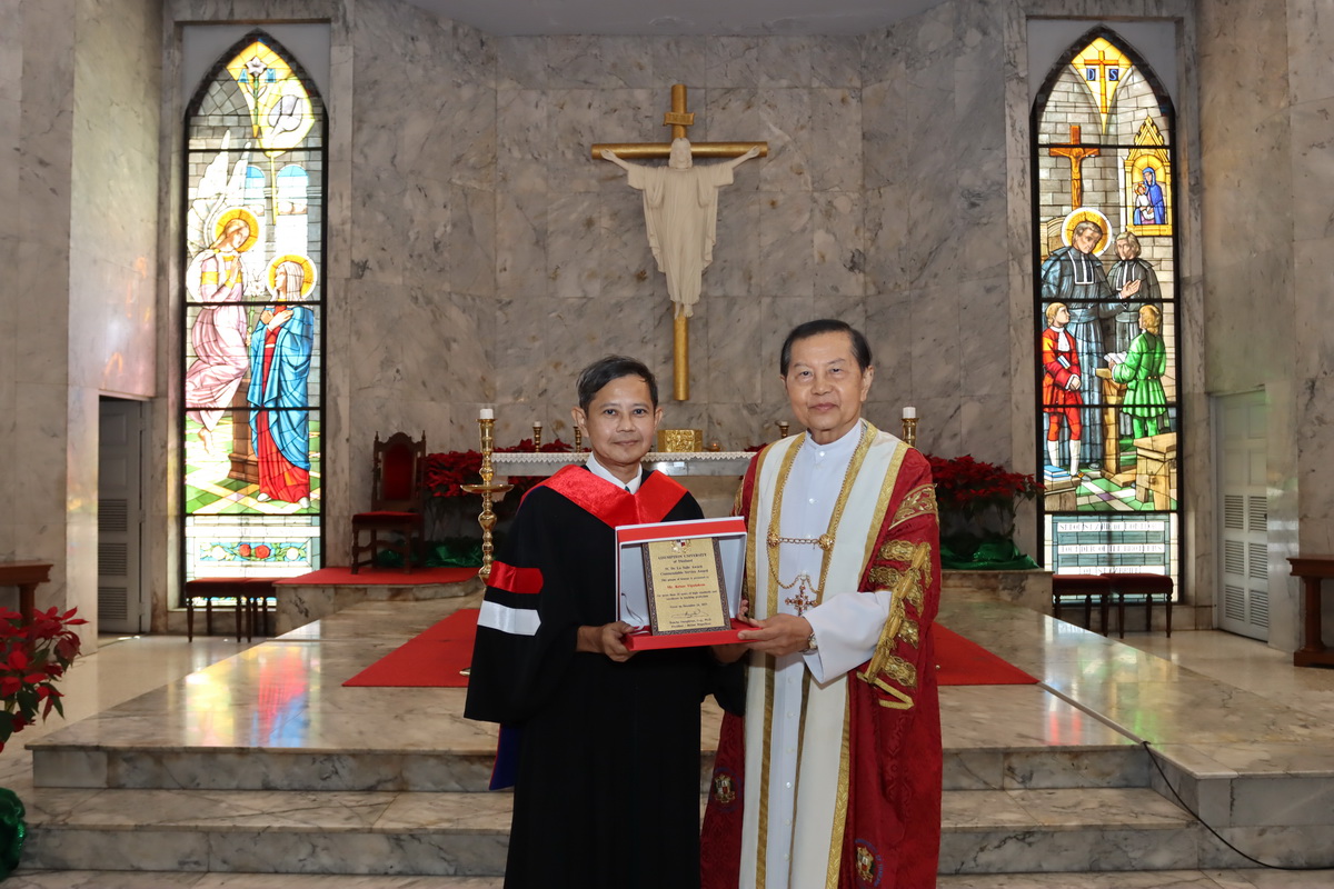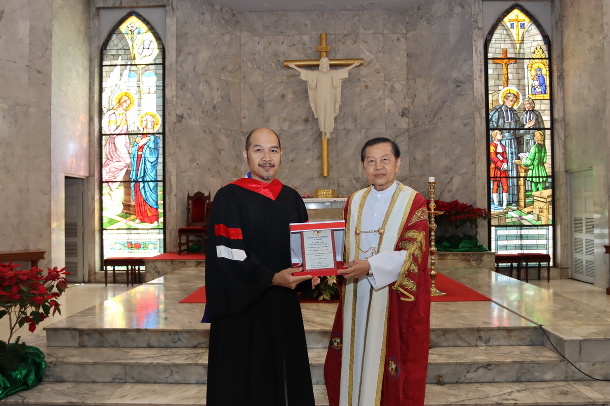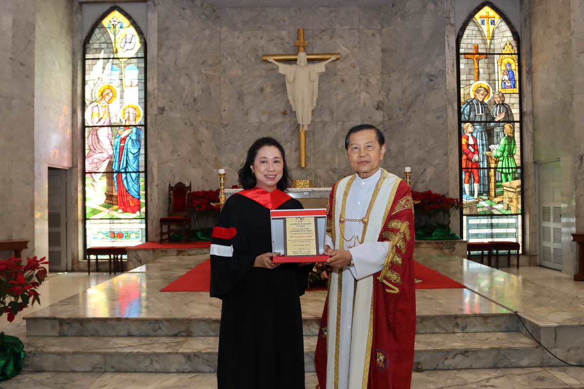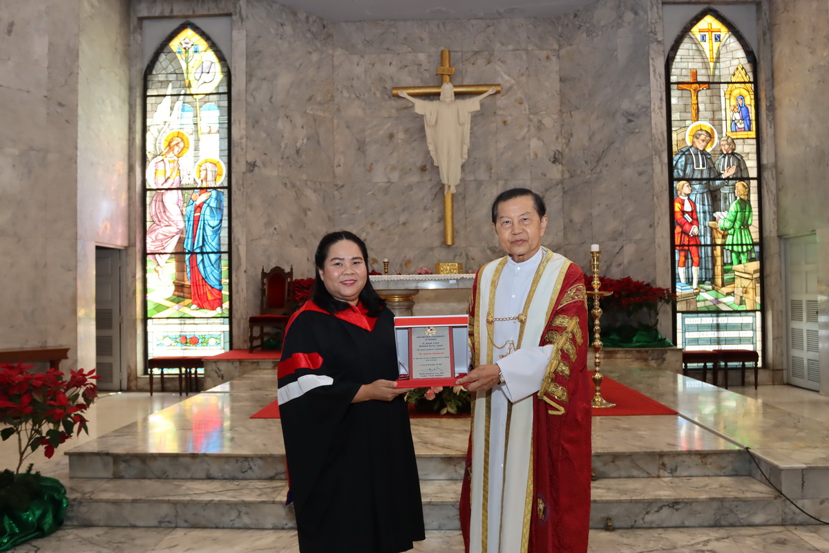 The prestigious St. Montfort Award for Illustrious Service was conferred upon Dr. Chayada Thanavisuth, Dean of the Graduate School of Human Sciences, and Assoc. Prof. Dr. Sureepong Phothongsunan, Dean of the Theodore Maria School of Arts. This award, named after St. Louis Marie Grignion de Montfort, recognizes senior administrators for over twenty-five years of dedicated service.