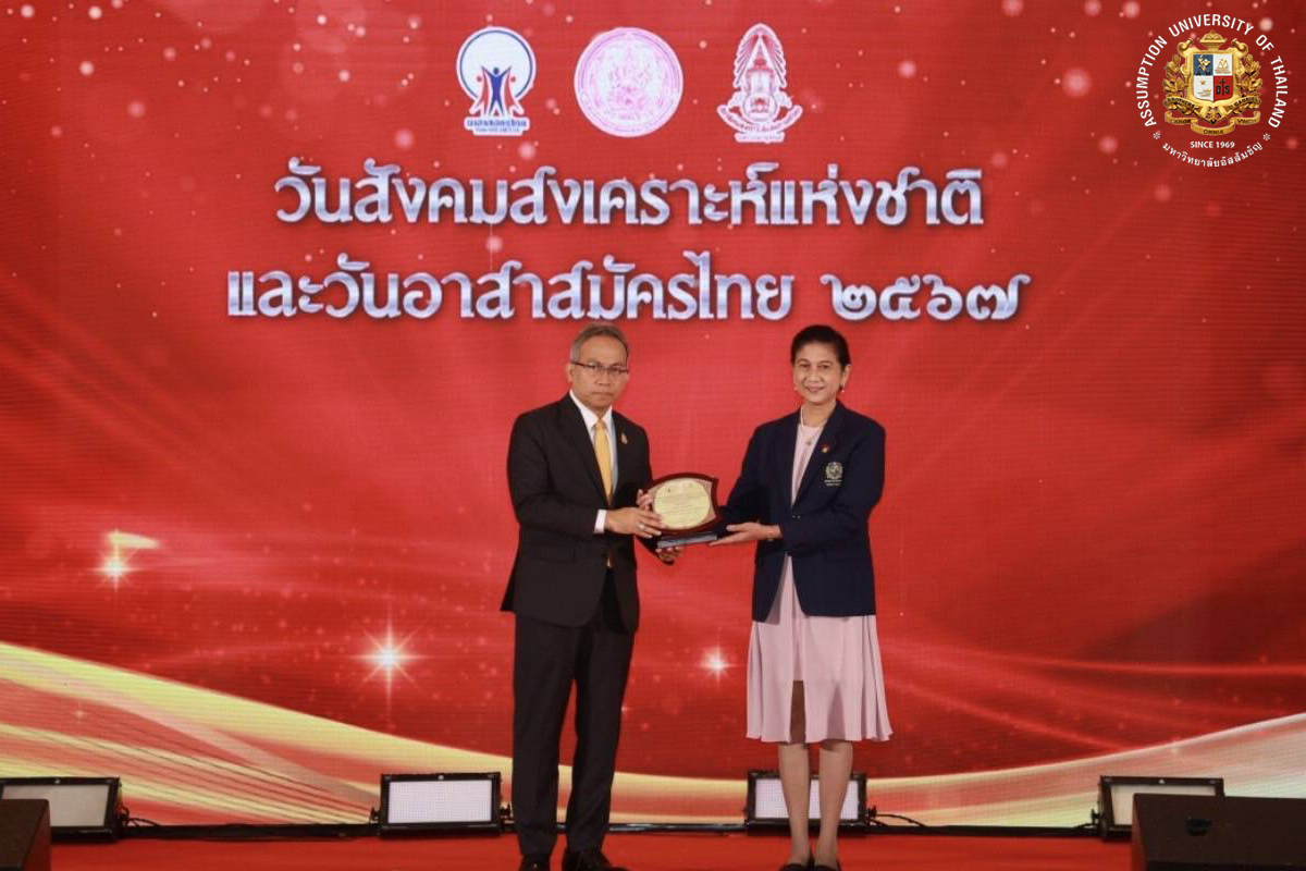 Assumption University of Thailand (AU) proudly congratulates Dr. Nanta Thongtaweewattana, Lecturer of General Education Department, Theodore Maria School of Arts on receiving the prestigious Outstanding Volunteer Award. This distinguished honor recognizes her exceptional dedication, strength, and selfless contributions to society, showcasing her unwavering commitment to serving both the community and the nation.