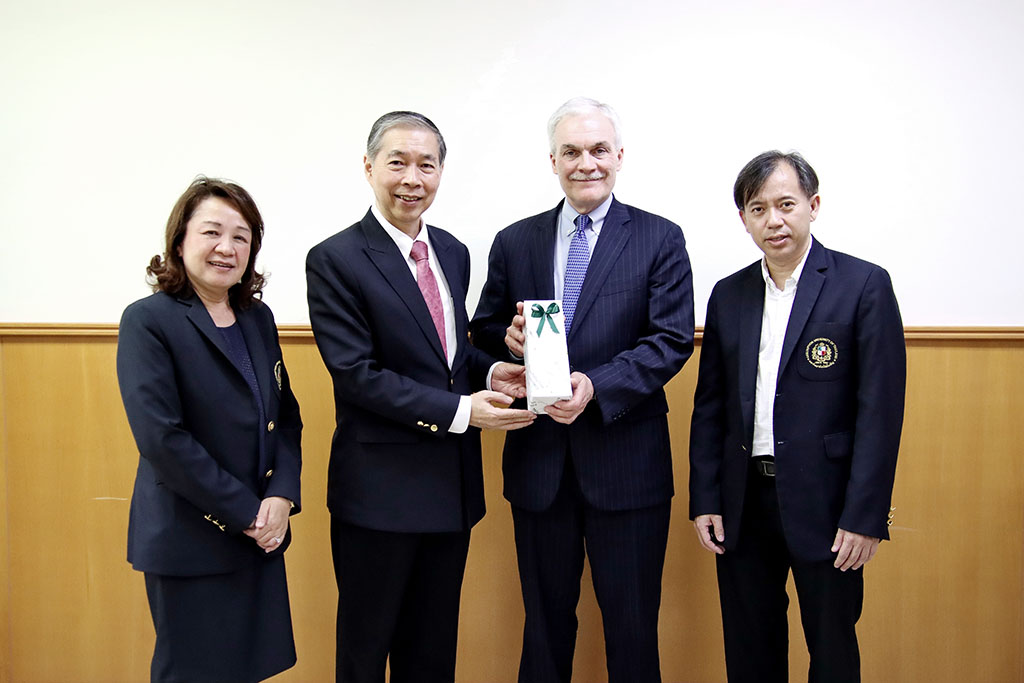 On this occasion, the delegation was warmly received by Asst. Prof. Dr. Uree Cheasakul, Vice President for Academic Affairs, Dr. Soonthorn Pibulncharoensit, University Registrar; Clinical Prof. Suwat Benjaponpitak, M.D., Dean of the St. Luke School of Medicine, Mr. Niti Mukayavongsa, Executive of the Pongsak Viddayakorn Foundation, along with executives from the Office of the Vice President for Academic Affairs, and faculty administrators and members of the St. Luke School of Medicine.