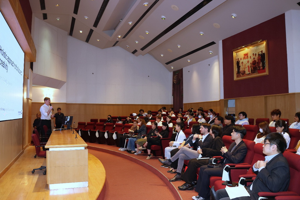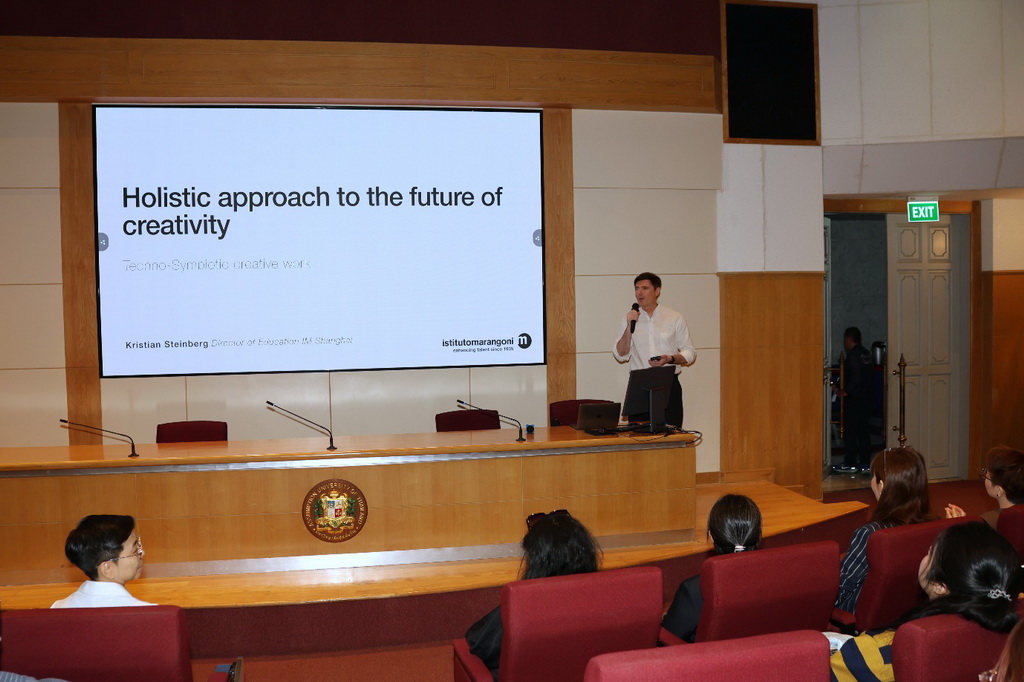 Mr. Kristian Steinberg also conducted a talk titled “Holistic Approach to the Future” for AU students. He emphasized the growing role of artificial intelligence as both an enabler and creative companion, showing how AI can support the visualization of abstract ideas, assist in testing concepts, and transform innovative thinking into tangible outcomes. His session encouraged students to integrate creativity with technology and develop forward-looking approaches to design and communication.