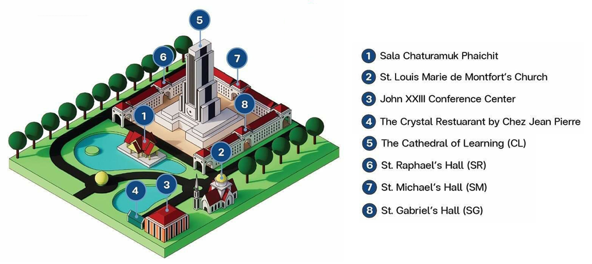 Crystal Restaurant “Chez Jean Pierre” – a two storeys glass building (located near The John XXIII Conference Center) is a place for practical learning of AU students who take Kitchen Operations, offer a real cooking experience with operating crystal restaurant (HTM 4112/BHT 3405) and Food & Beverage Service, offer a real teaching to be bartender or barista (HTM 4111/ BHT 3404).