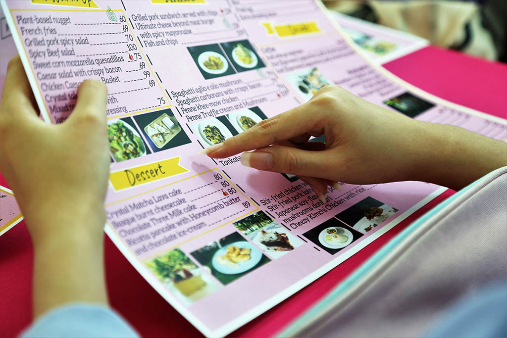 We serve variety of food, burger, spaghetti, Korean, plant-based food and Thai food with signature desserts and smoothies. Prices are affordable because they are sponsored by the university. Come to have lunch at Crystal Restaurant with good services by AU students and enjoy the beautiful view of our campus through the glass wall.