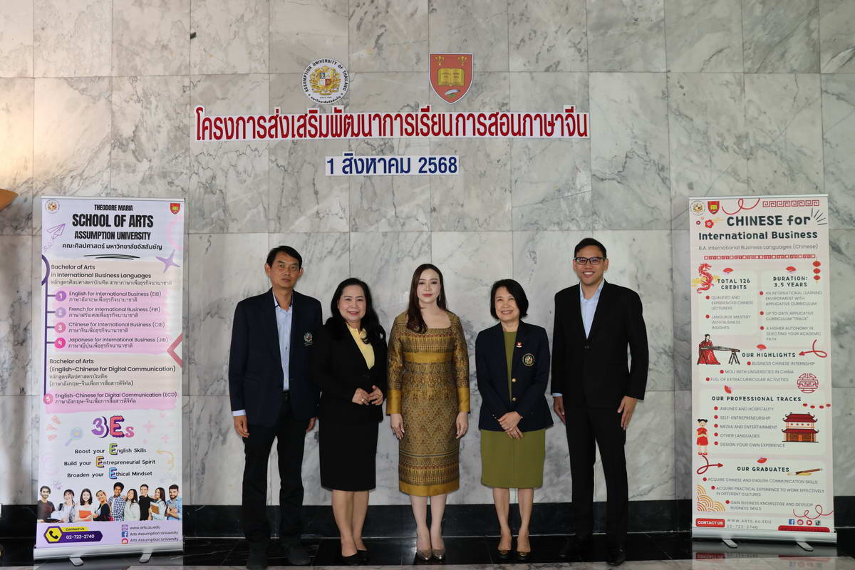 The Chinese Language Teaching Training Project was successfully held on August 1, 2025, at Assumption University of Thailand (AU), Suvarnabhumi Campus. The event was co-organized by the Samut Prakan Primary Educational Service Area Office 2, the Department of Business Chinese, Theodore Maria School of Arts, and the Institute for Research and Academic Services, AU.