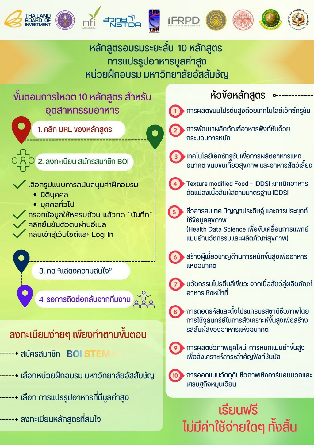 🔥 ลงทะเบียนความสนใจฟรี ! รวม 10 หลักสูตรนวัตกรรมอาหารแห่งอนาคต จากมหาวิทยาลัยอัสสัมชัญและเครือข่าย 🚀