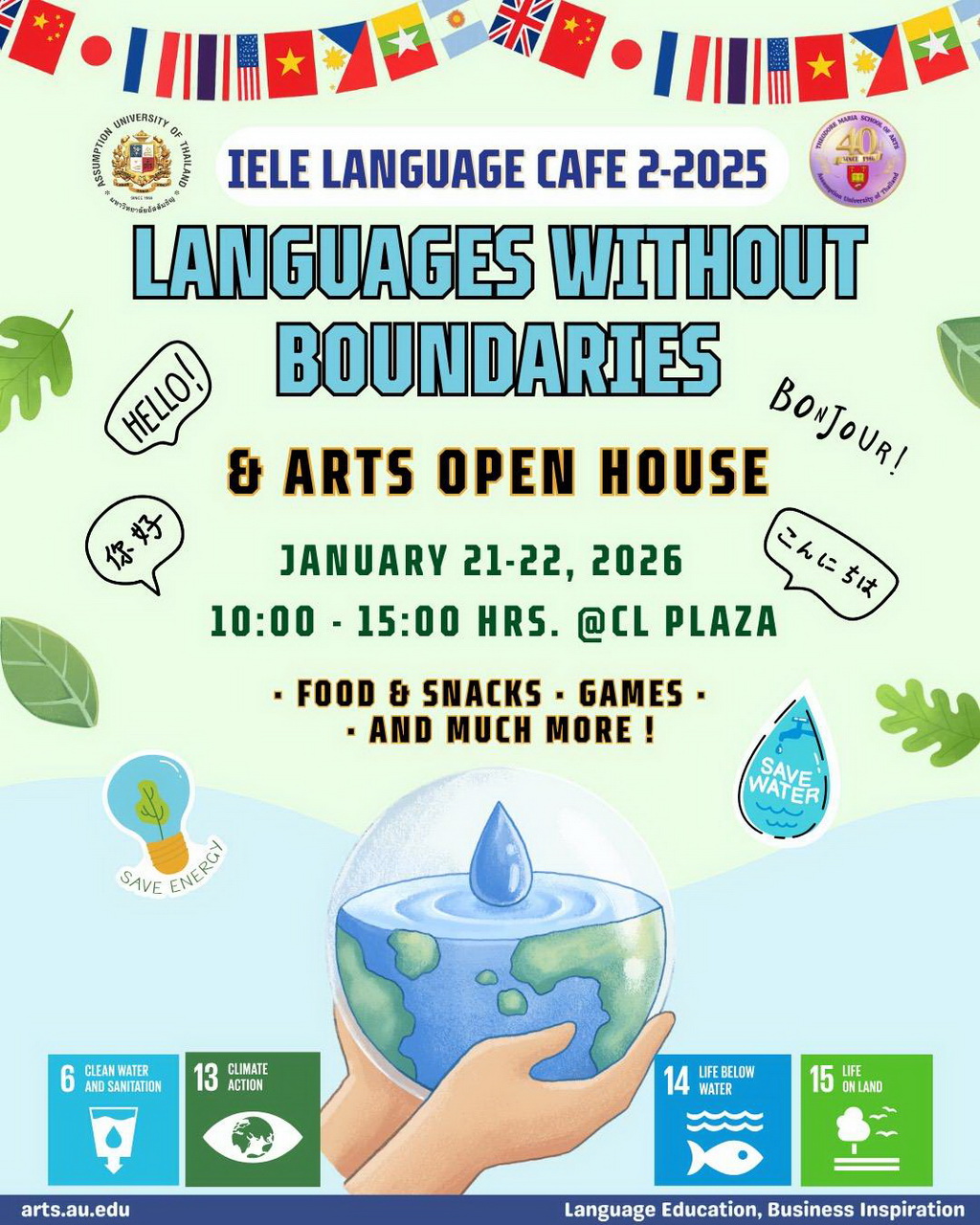 Objectives: To create appreciation for cultural diversity and awareness of SDG-related issues. To enhance the students’ English language knowledge and skills beyond the classrooms through SDG-related games. To promote collaboration among IELE, School of Arts, AU community, and the Public. To publicize the IELE and the School of Arts to the public on various platforms [...] |