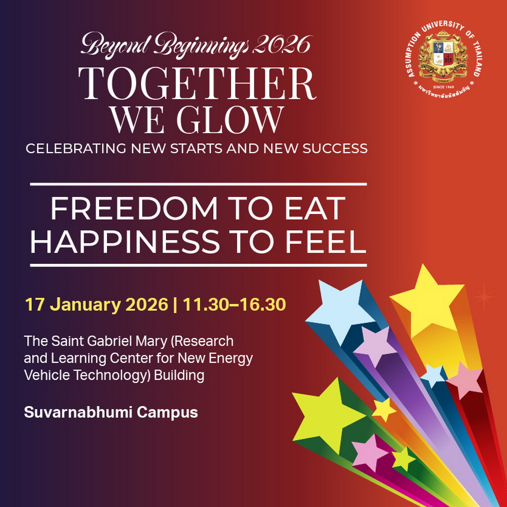 ✨ Together We Glow 2026, Beyond Beginnings 📅 17 January 2026 | 11.30–16.30 📍 The Saint Gabriel Mary (Research and Learning Center for New Energy Vehicle Technology) Building Suvarnabhumi Campus All students are invited to a mid-day gathering celebrating new beginnings in learning, the start of new classes, and the achievement of graduation. 🎓 Free [...] |