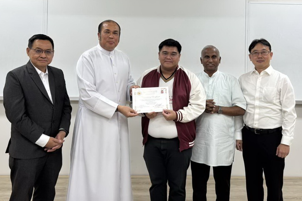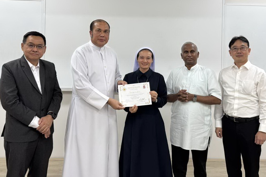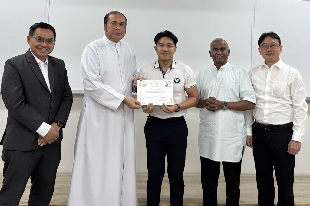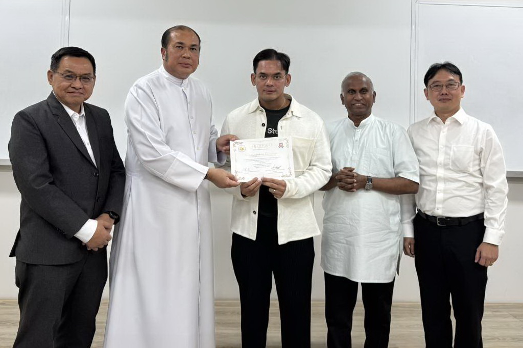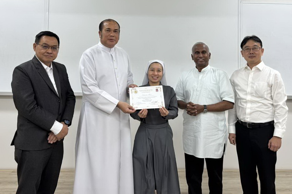 The certificates were formally presented by Rev. Bro. Sirichai Fonseka, f.s.g., Ph.D., President of AU, in recognition of the Brothers’ commitment to professional growth, spiritual formation, and their enduring mission as educators in service to the Church and society.