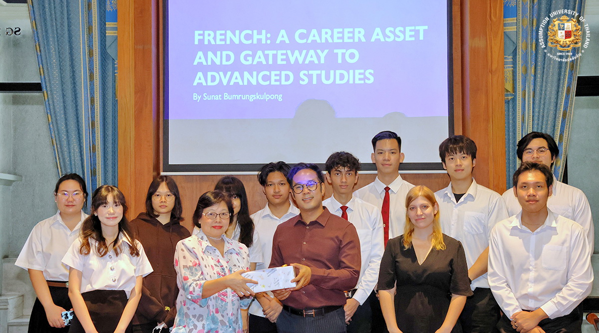 The Theodore Maria School of Arts at Assumption University of Thailand (AU) played host to an insightful and engaging special lecture titled “French: A Career Asset and Gateway to Advanced Studies.” The session, led by Mr. Sunat Bumrungskulpong, APAC System Advisor and Project Manager at Exxon Mobil Limited, explored how mastering French can be a game-changer in global careers and higher education.