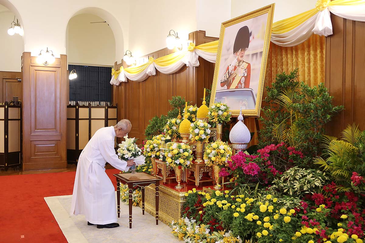 Rev. Bro. Amnuay Yoonprayong, f.s.g., Ph.D., Campus Minister, presented a floral arrangement and signing the official book of blessings at the Sala Sahathai Samakhom, a ceremonial hall within the Grand Palace that welcomes tributes from across the nation on this royal occasion.