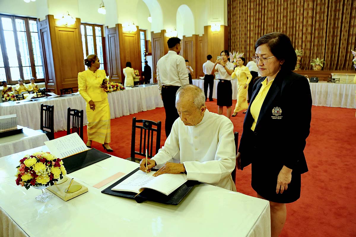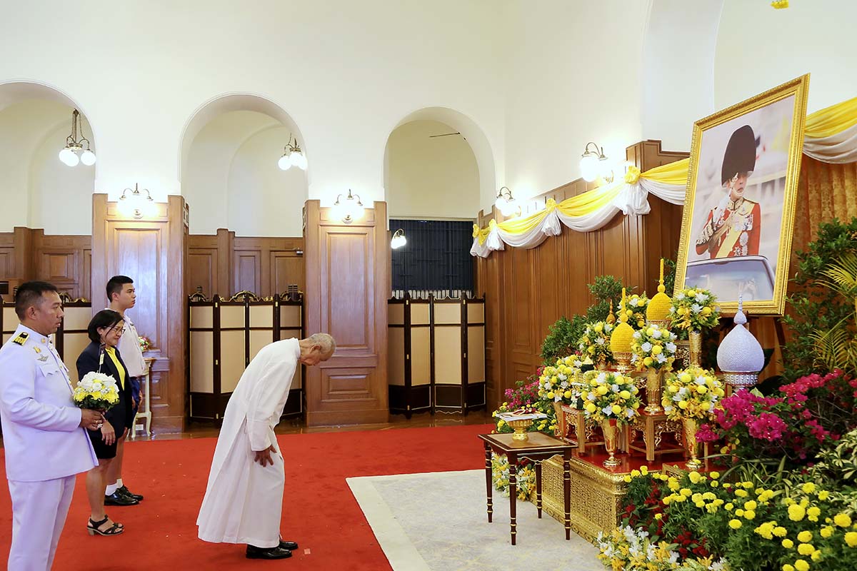Rev. Bro. Amnuay Yoonprayong, f.s.g., Ph.D., Campus Minister, presented a floral arrangement and signing the official book of blessings at the Sala Sahathai Samakhom, a ceremonial hall within the Grand Palace that welcomes tributes from across the nation on this royal occasion.
